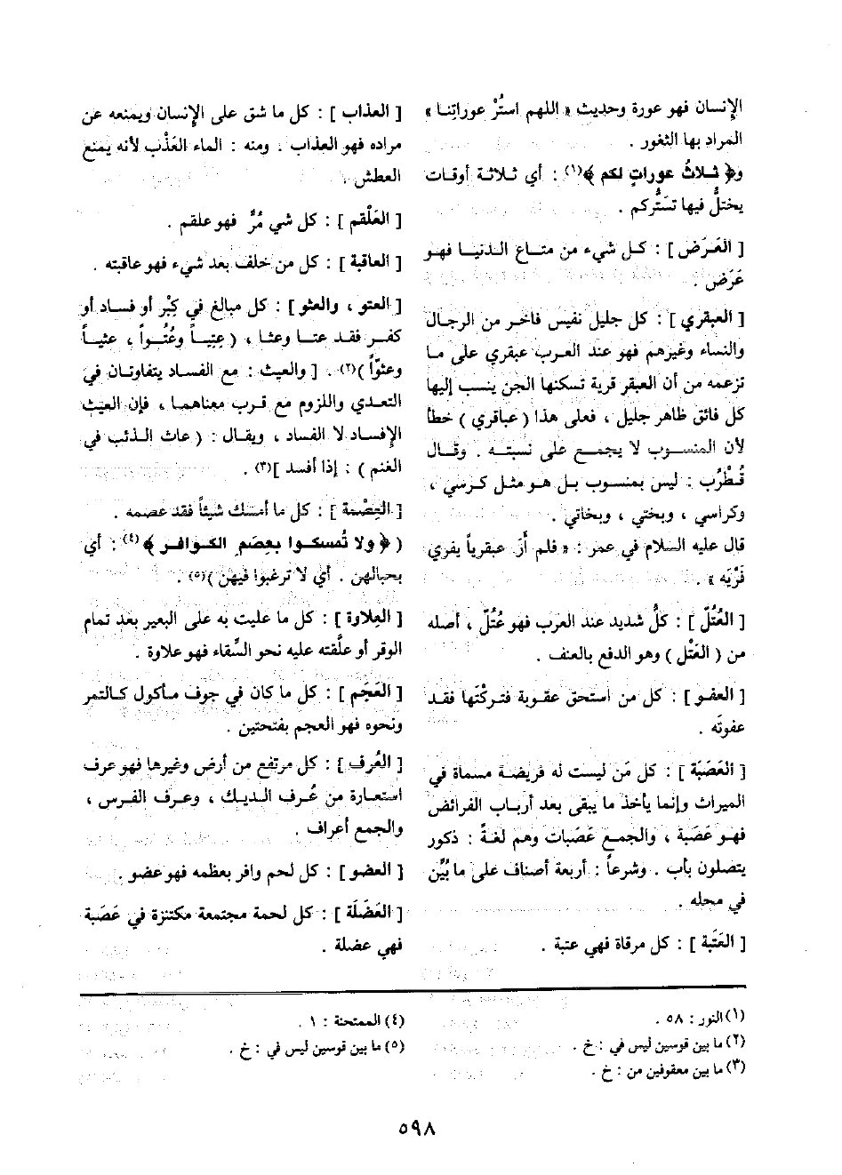 [العتبة] : كل مرقاة فَهِيَ عتبَة [الْعَذَاب] : كل مَا شقّ على الْإِنْسَان ويمنعه عَن مُرَاده فَهُوَ الْعَذَاب وَمِنْه: المَاء العذب لِأَنَّهُ يمْنَع الْعَطش