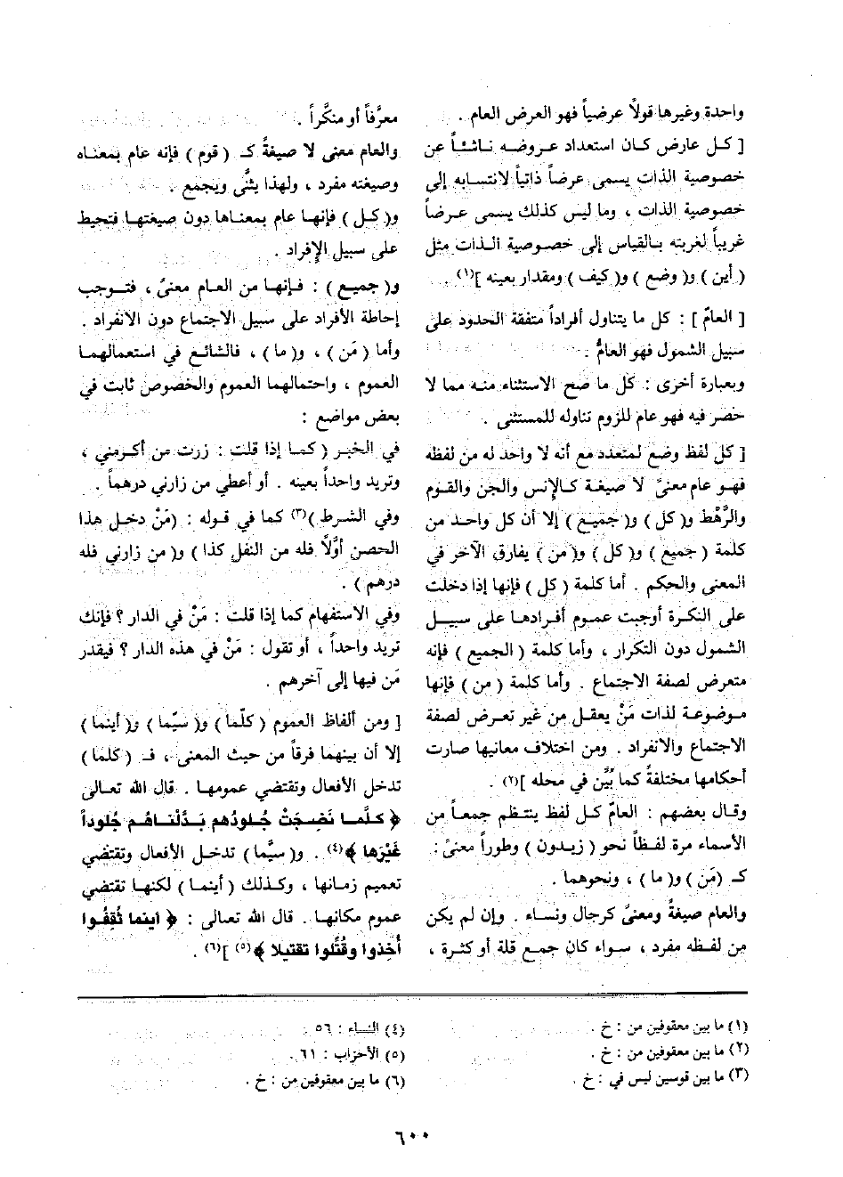 [الْعَام] : كل مَا يتَنَاوَل أفرادا متفقة الْحُدُود على سَبِيل الشُّمُول فَهُوَ الْعَام