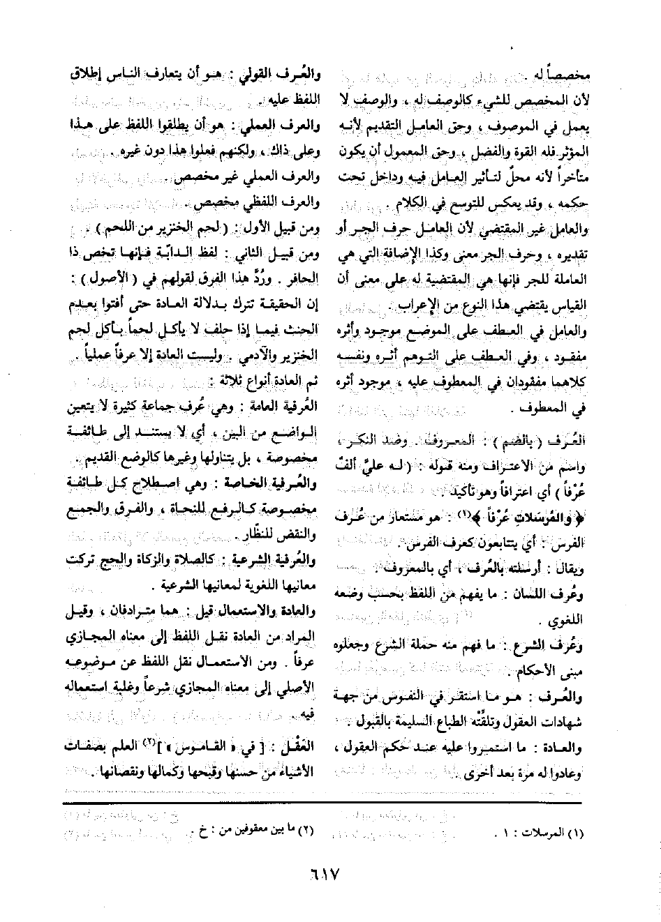 وَالْعرْف: هُوَ مَا اسْتَقر فِي النُّفُوس من جِهَة شَهَادَات الْعُقُول وَتَلَقَّتْهُ الطباع السليمة بِالْقبُولِ