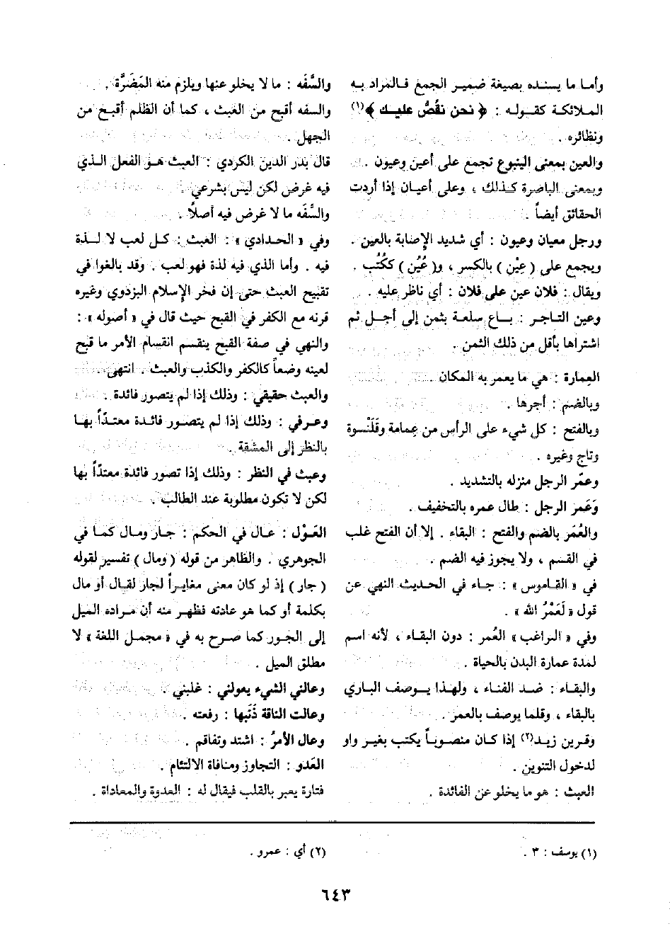 وَفِي " الرَّاغِب " الْعُمر: دون الْبَقَاء، لِأَنَّهُ اسْم لمُدَّة عمَارَة الْبدن بِالْحَيَاةِ