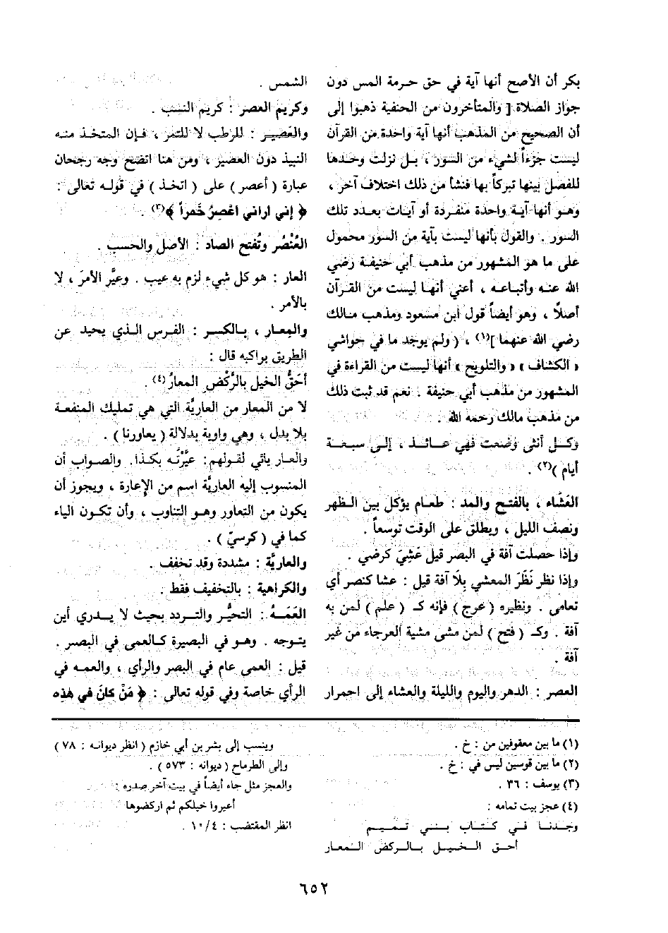 الْعَصْر: الدَّهْر وَالْيَوْم وَاللَّيْلَة وَالْعشَاء إِلَى احمرار الشَّمْس