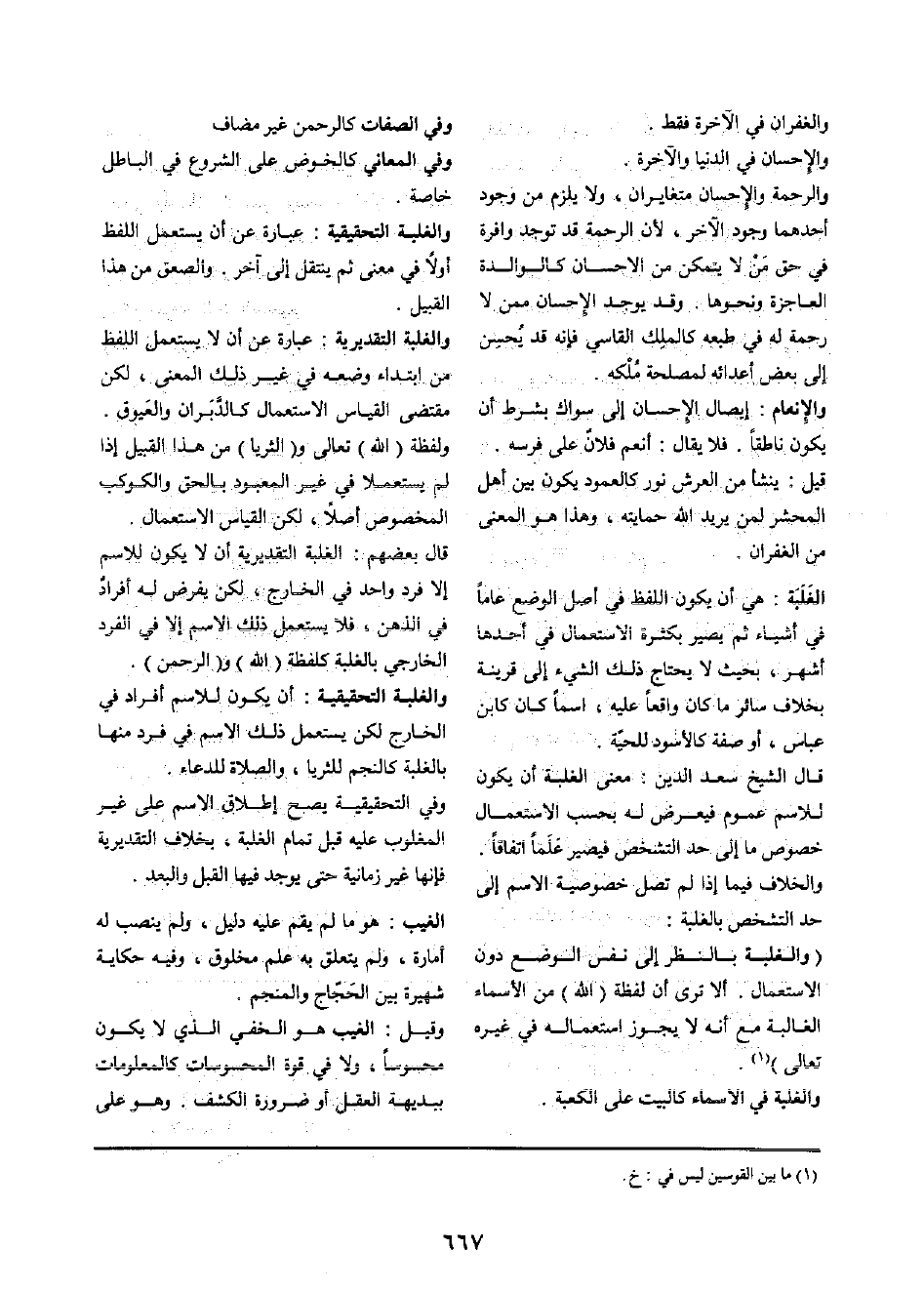قَالَ الشَّيْخ سعد الدّين: معنى الْغَلَبَة أَن يكون للاسم عُمُوم فَيعرض لَهُ بِحَسب الِاسْتِعْمَال خُصُوص مَا إِلَى حد التشخص فَيصير علما اتِّفَاقًا