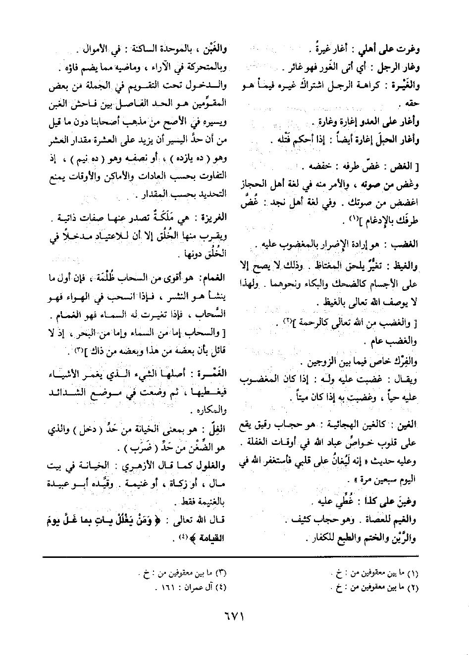 الْغَيْن: كالغين الهجائية: هُوَ حجاب رَقِيق يَقع على قُلُوب خَواص عباد الله فِي أَوْقَات الْغَفْلَة وَعَلِيهِ حَدِيث " إِنَّه ليغان على قلبِي فأستغفر الله فِي الْيَوْم سبعين مرّة