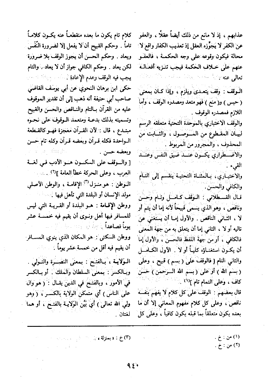 كَلَام تَامّ يكون مَا بعده مُنْقَطِعًا عَنهُ يكون كلَاما تَاما. وَحكم الْقَبِيح أَن لَا يفعل إِلَّا لضَرُورَة النّفَس ويعاد. وَحكم الْحسن أَن يجوز الْوَقْف بِلَا ضَرُورَة لَكِن يُعَاد. وَحكم الْكَافِي جَوَاز أَن لَا يُعَاد. والتام يجب فِيهِ الْوَقْف وَعدم الْإِعَادَة.