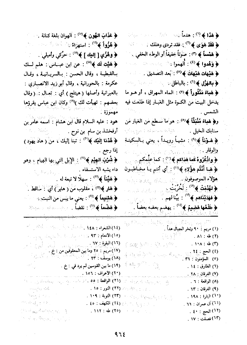 {هباء منثورا} : المَاء المهراق، أَو هُوَ مَا يدْخل الْبَيْت من الكوة مثل الْغُبَار إِذا طلعت فِيهِ الشَّمْس.