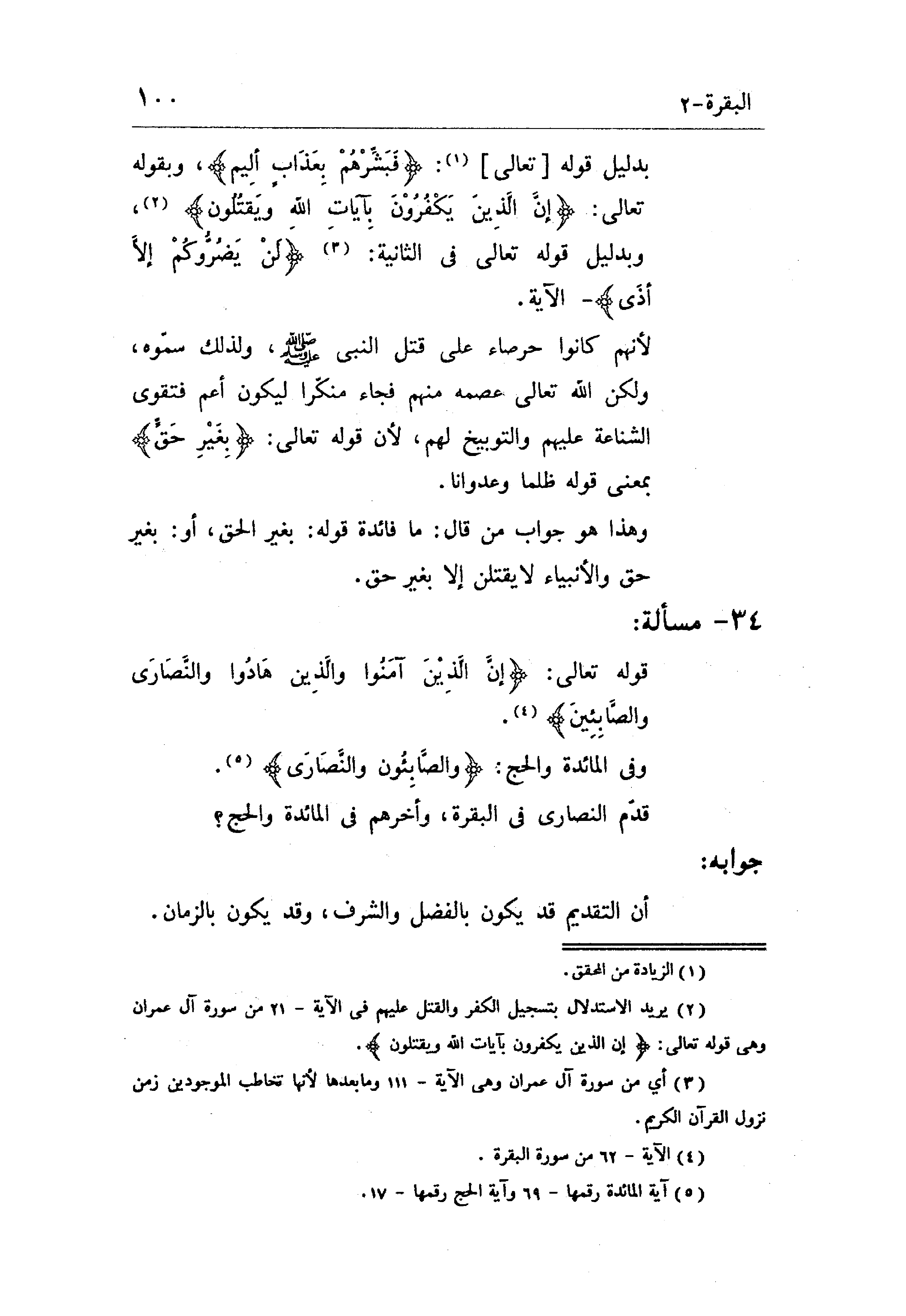 قدم النصارى فى البقرة، وأخرهم فى المائدة والحج