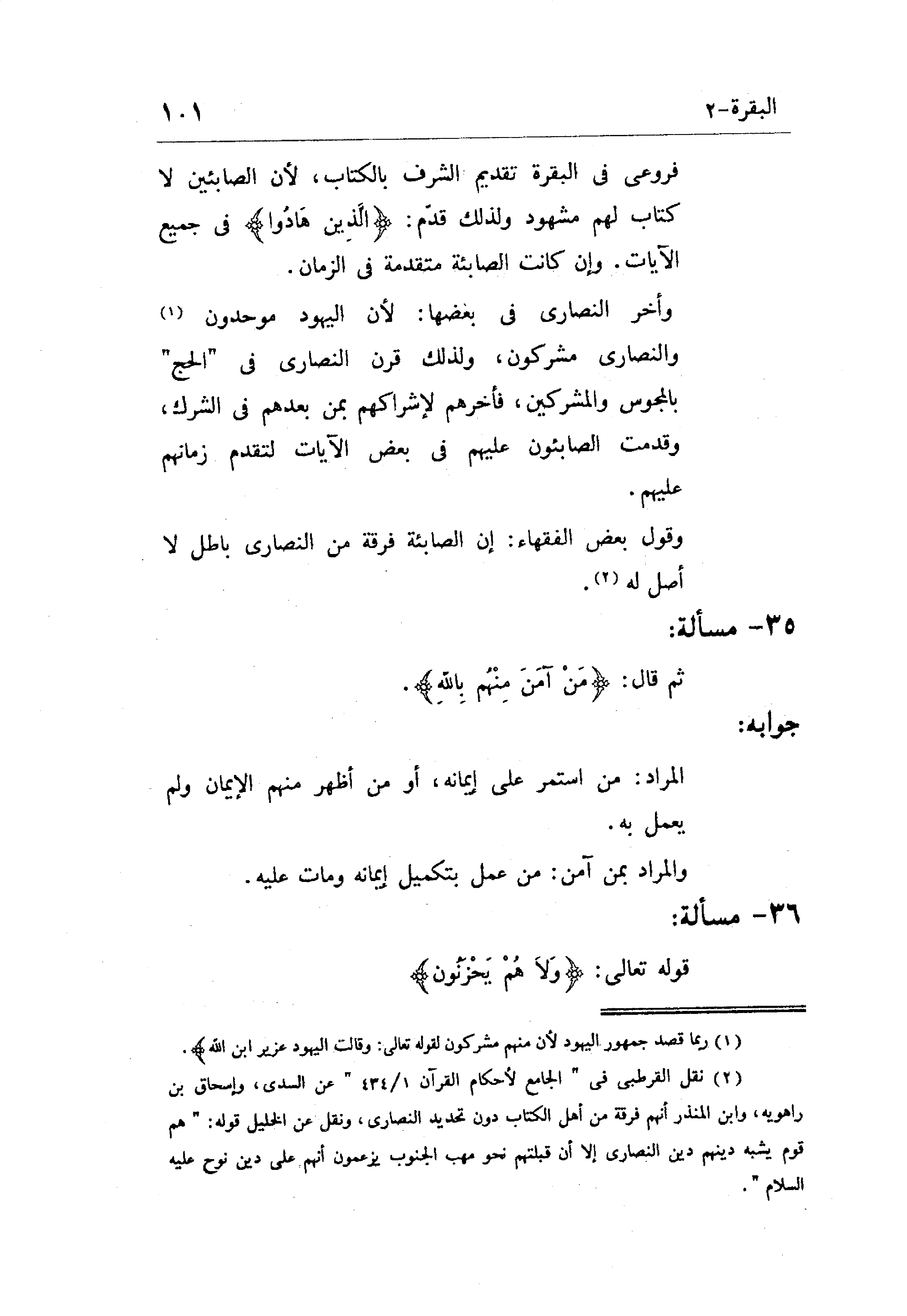 فروعي في البقرة تقديم الشرف بالكتاب، لأن الصابئين لا