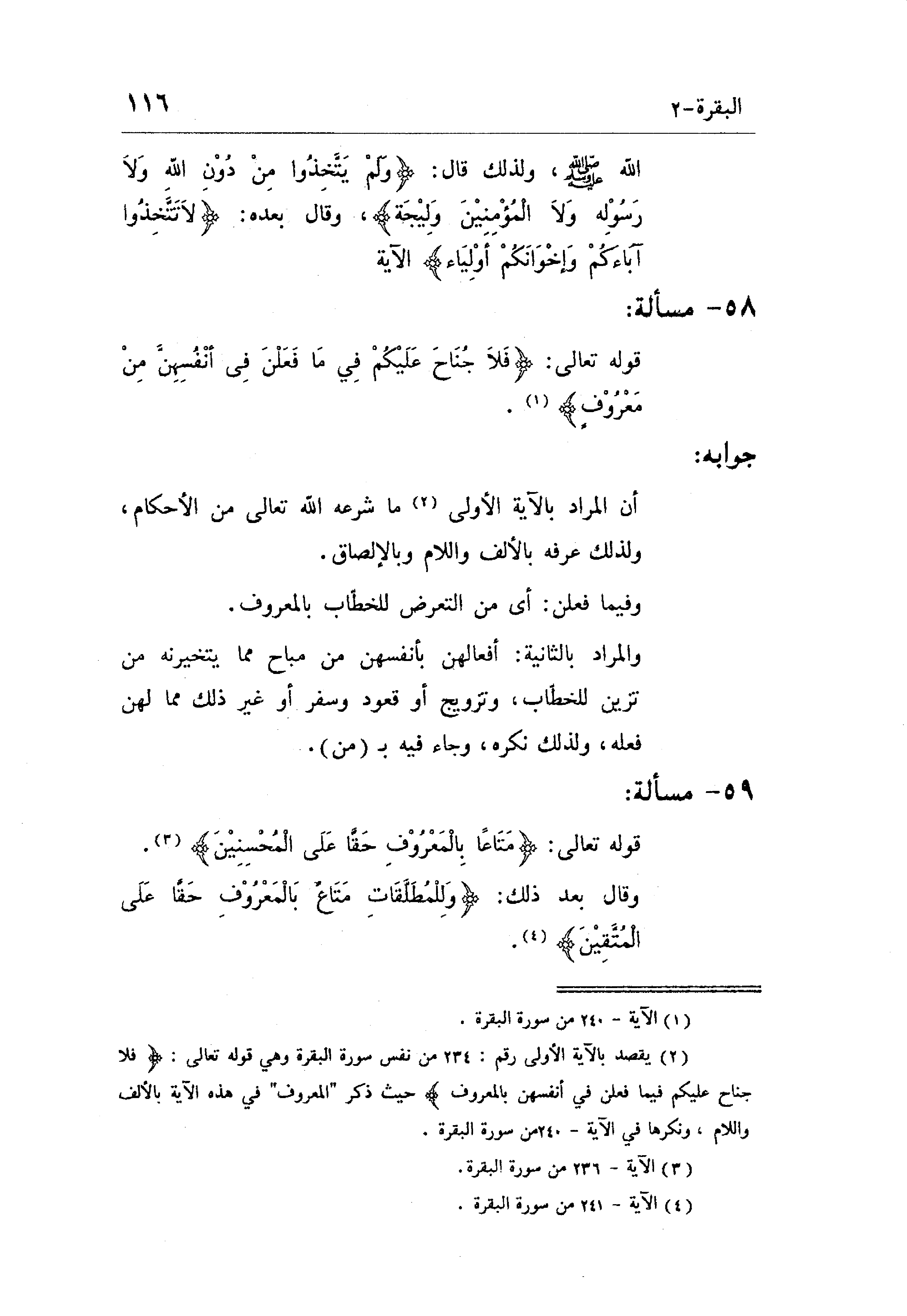 قوله تعالى: (مَتَاعًا بِالْمَعْرُوفِ حَقًّا عَلَى الْمُحْسِنِينَ) .