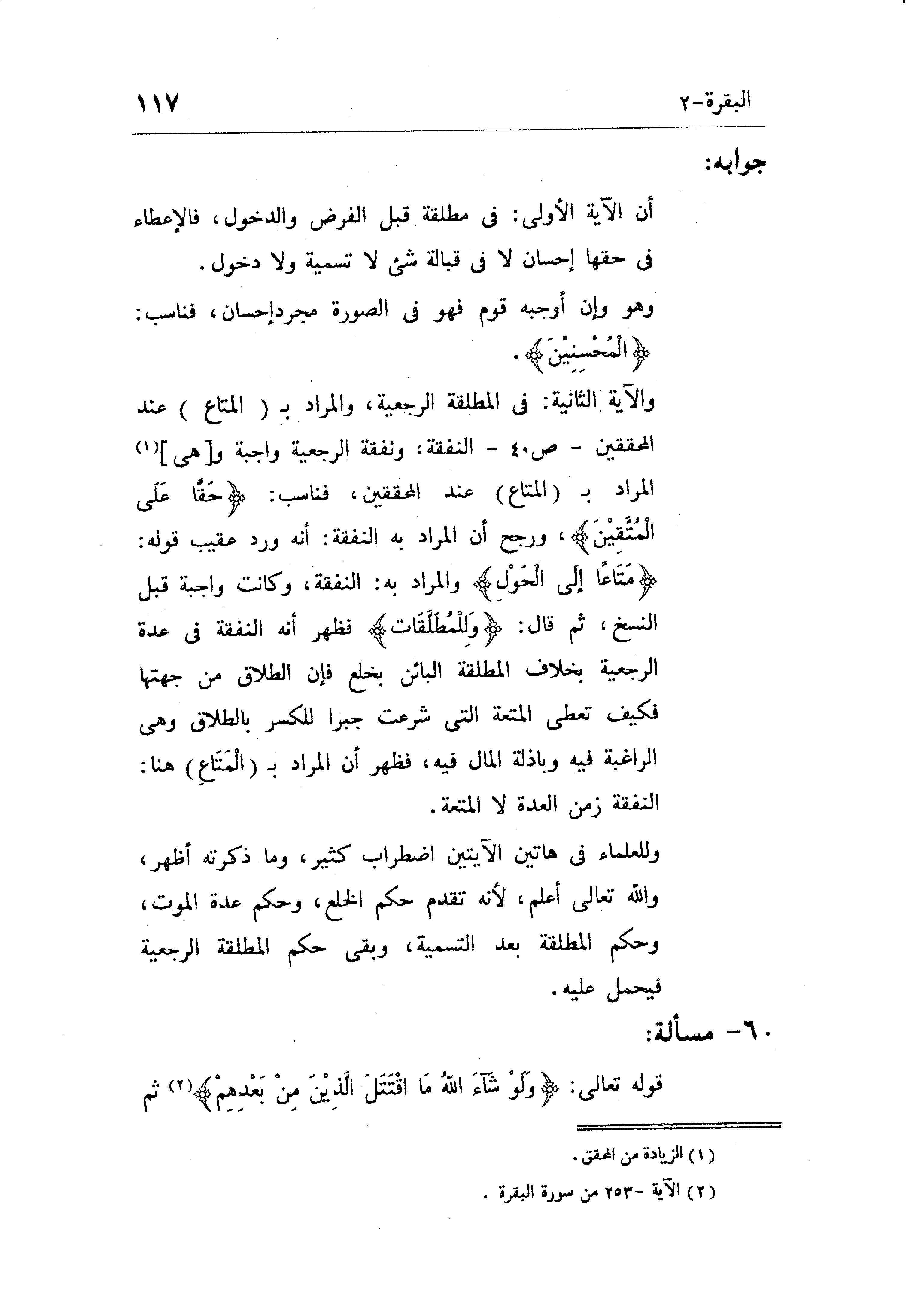 والآية الثانية في المطلقة الرجعية، والمراد بـ (المتاع) عند المحققين النفقة، ونفقة الرجعية واجبة والمراد
