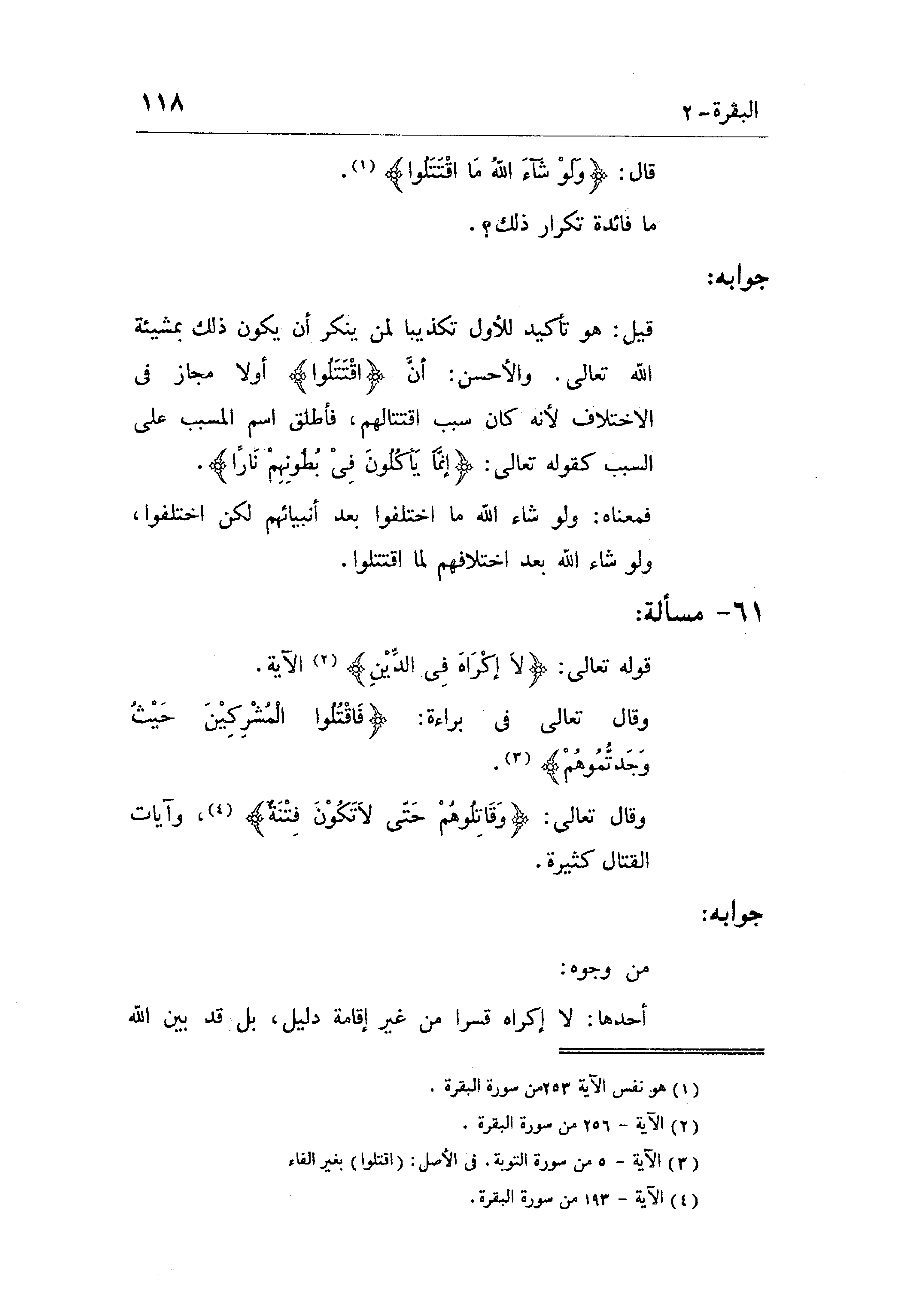 وقال تعالى: (وَقَاتِلُوهُمْ حَتَّى لَا تَكُونَ فِتْنَةٌ) ، وآيات القتال كثيرة.