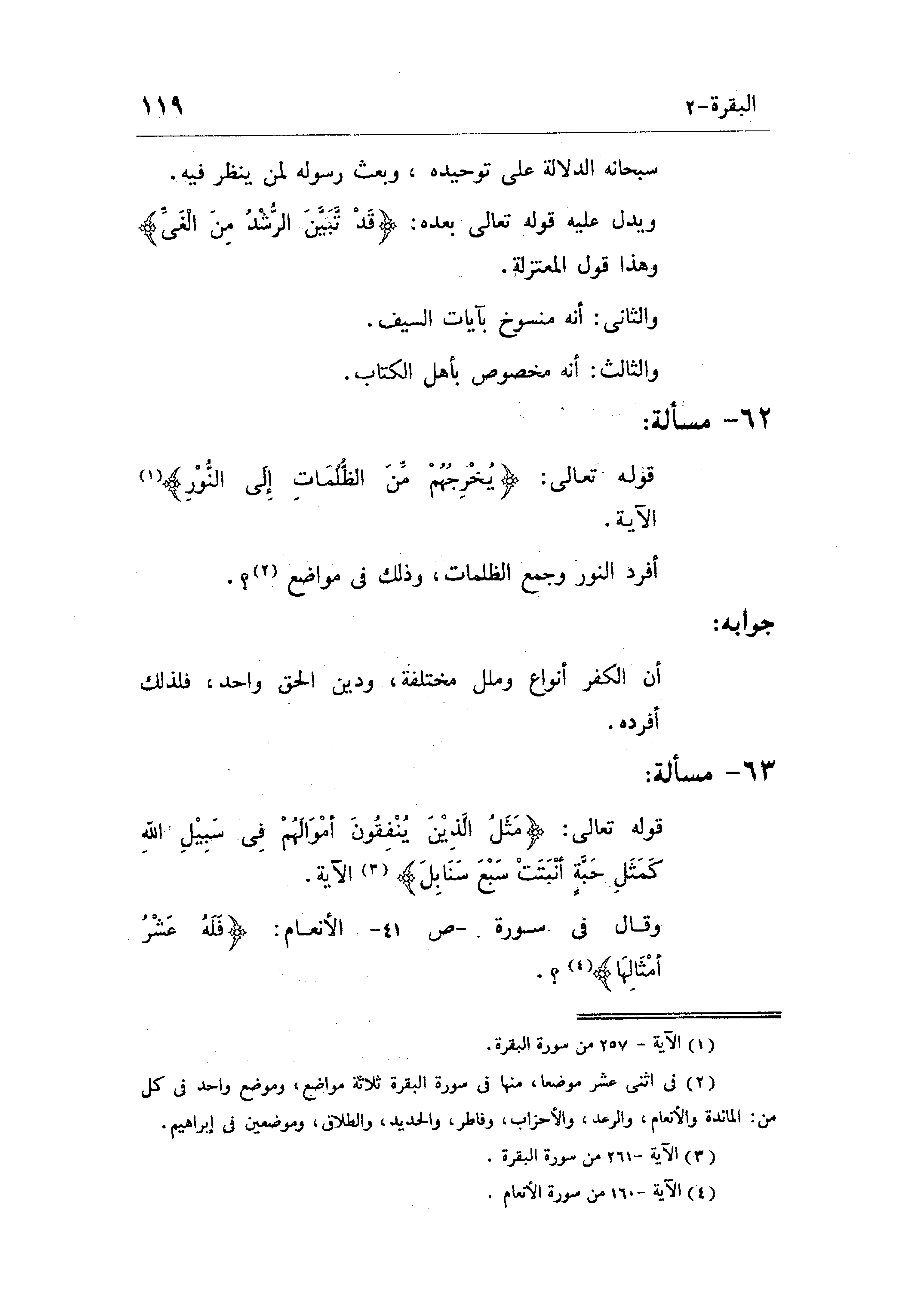 أفرد النور وجمع الظلمات، وذلك في مواضع؟ .