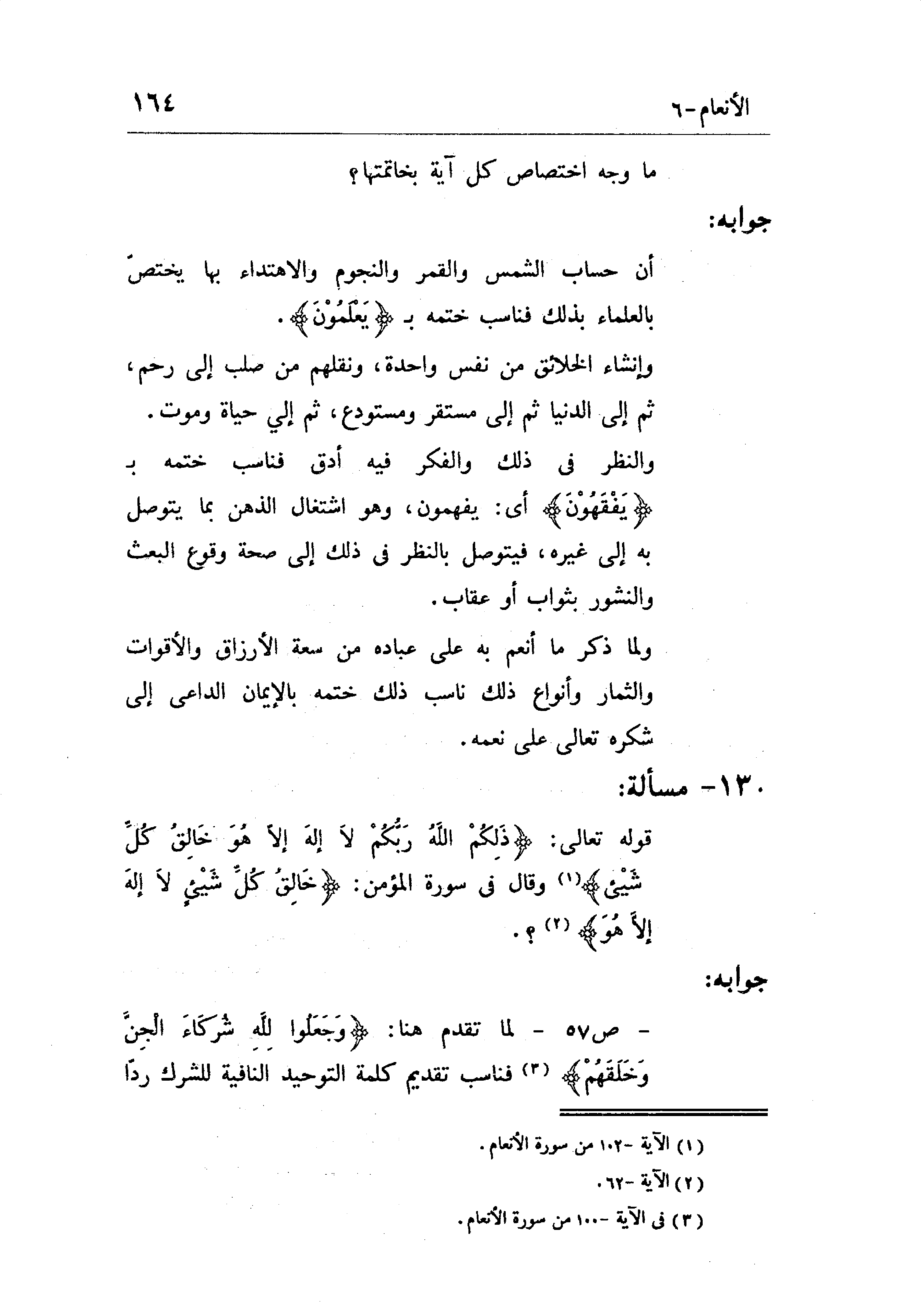 قوله تعالى: (ذَلِكُمُ اللَّهُ رَبُّكُمْ لَا إِلَهَ إِلَّا هُوَ خَالِقُ كُلِّ شَيْءٍ) وقال في سورة المؤمن: (خَالِقُ كُلِّ شَيْءٍ لَا إِلَهَ إِلَّا هُوَ) ؟ .