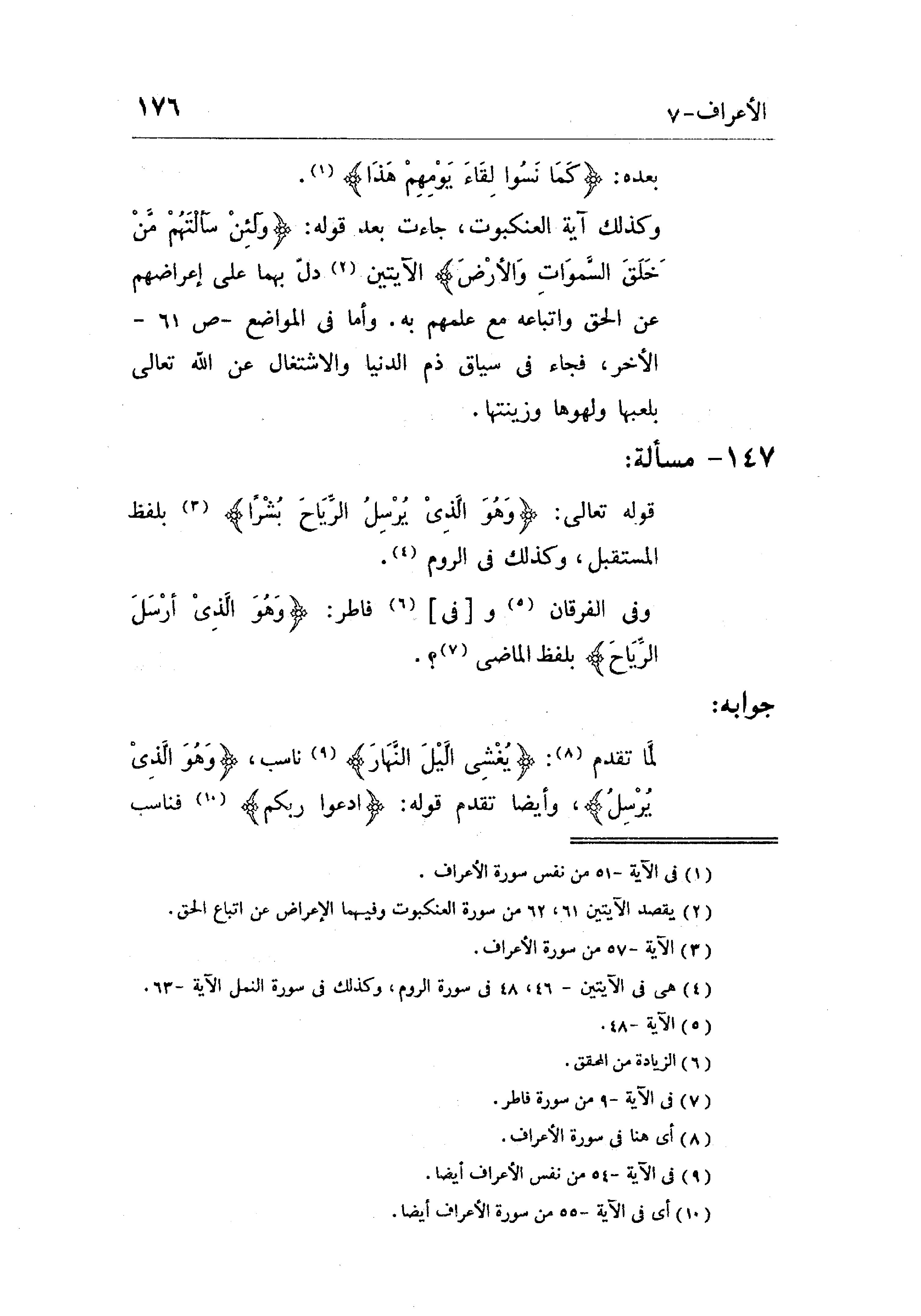 قوله تعالى: (وَهُوَ الَّذِي يُرْسِلُ الرِّيَاحَ بُشْرًا) بلفظ المستقبل، وكذلك في الروم.