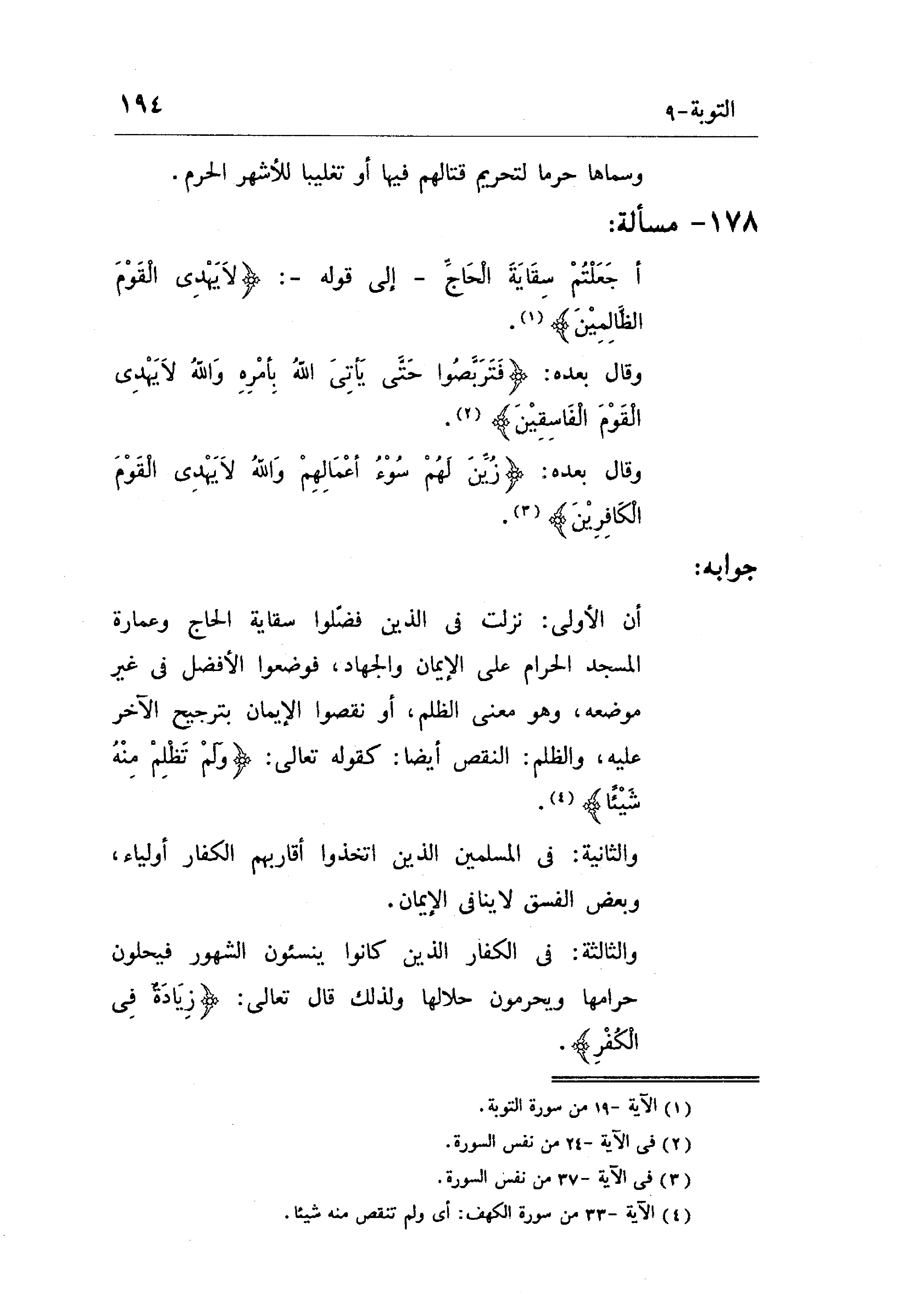 (أَجَعَلْتُمْ سِقَايَةَ الْحَاجِّ - إلى قوله - لَا يَهْدِي الْقَوْمَ الظَّالِمِينَ) ؟ ،.