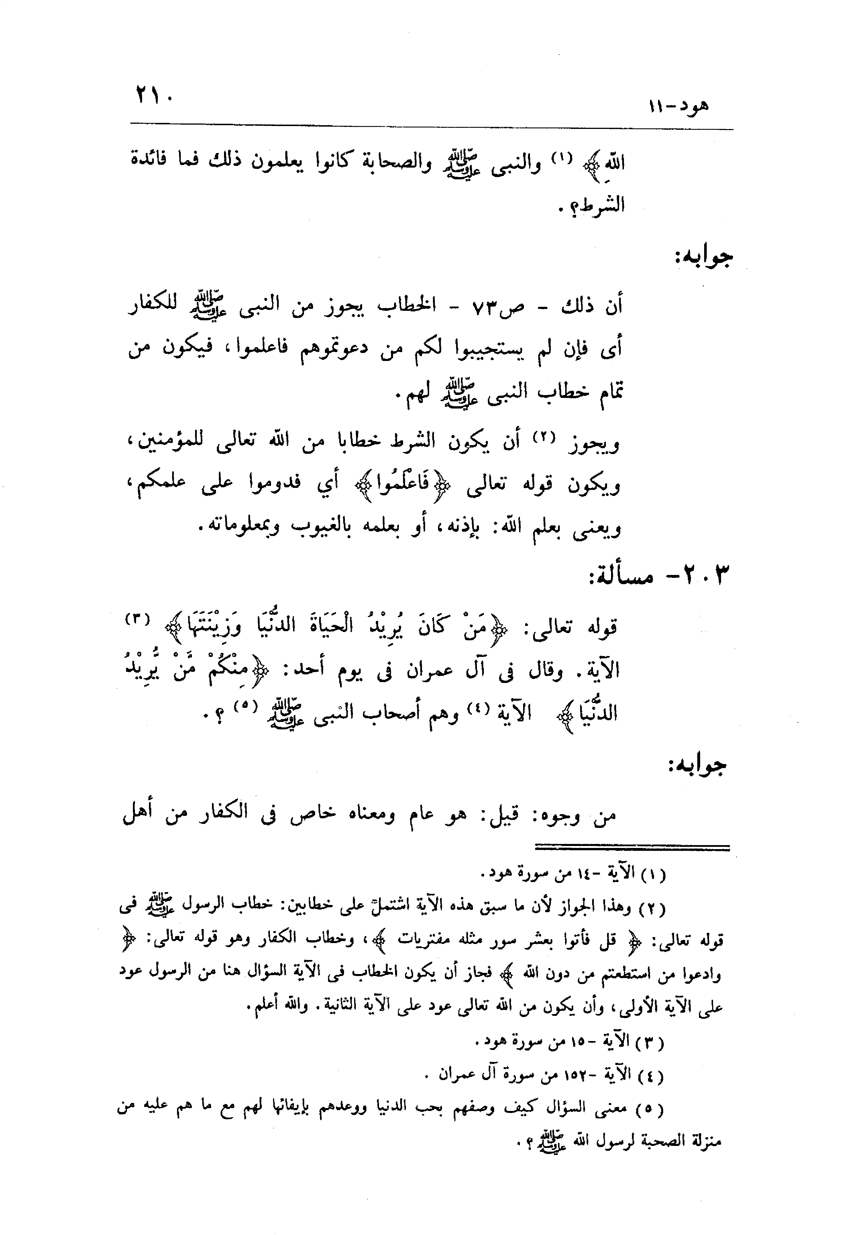 قوله تعالى: (مَنْ كَانَ يُرِيدُ الْحَيَاةَ الدُّنْيَا وَزِينَتَهَا) الآية. وقال في آل عمران في يوم أحد: (مِنْكُمْ مَنْ يُرِيدُ الدُّنْيَا) الآية وهم أصحاب النبى - صلى الله عليه وسلم -؟ .