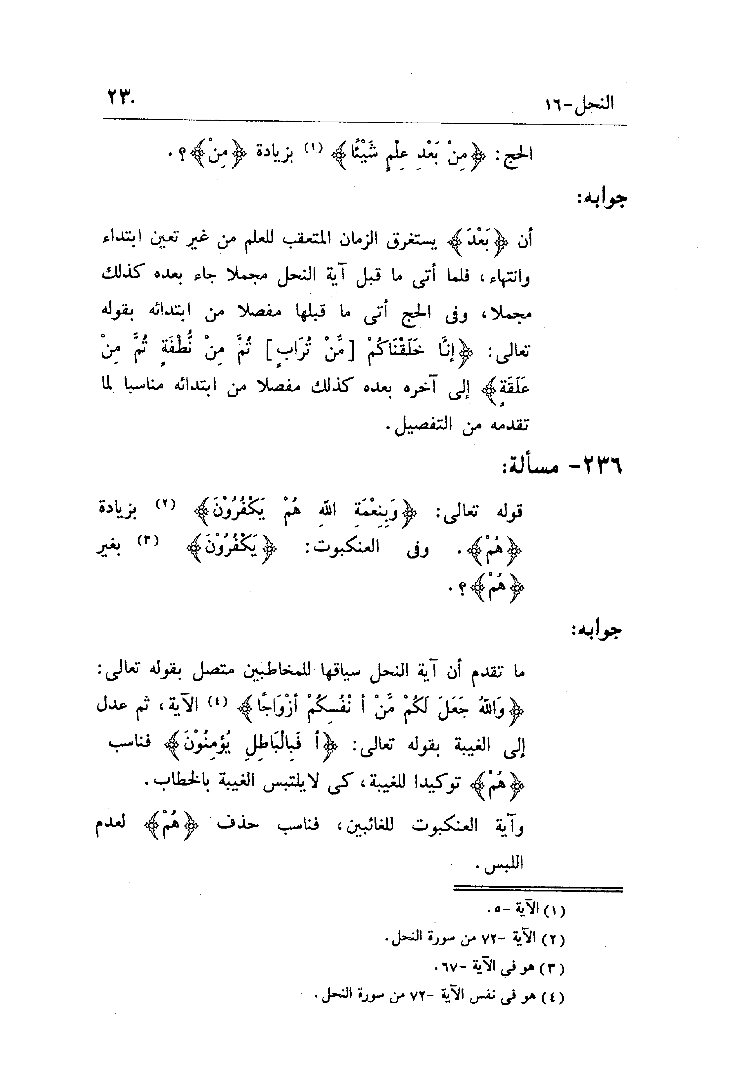 الحج: (مِنْ بَعْدِ عِلْمٍ شَيْئًا) بزيادة (من) ؟ .
