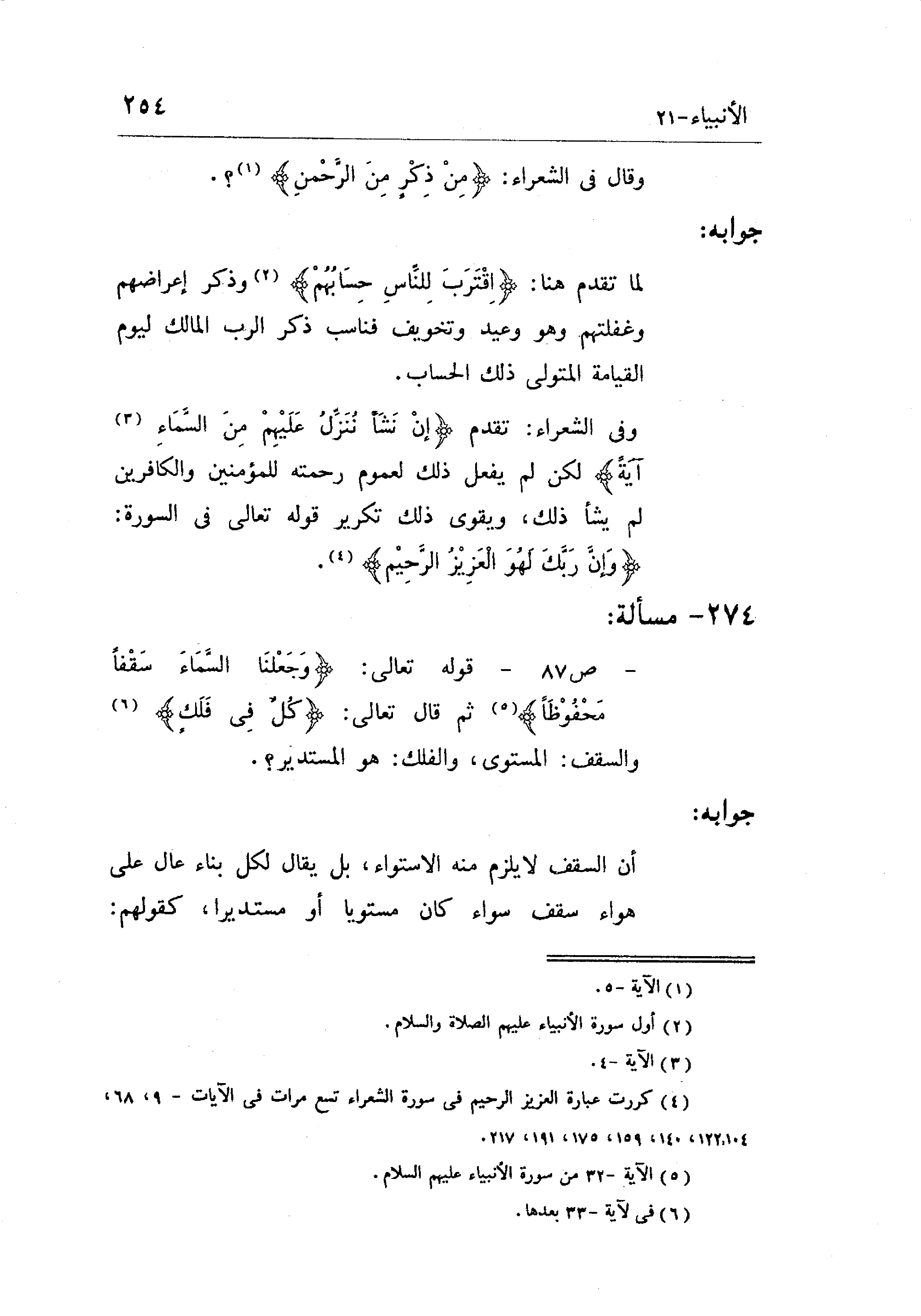 قوله تعالى: (وَجَعَلْنَا السَّمَاءَ سَقْفًا مَحْفُوظًا) ثم قال تعالى: (كُلٌّ فِي فَلَكٍ يَسْبَحُونَ (33)