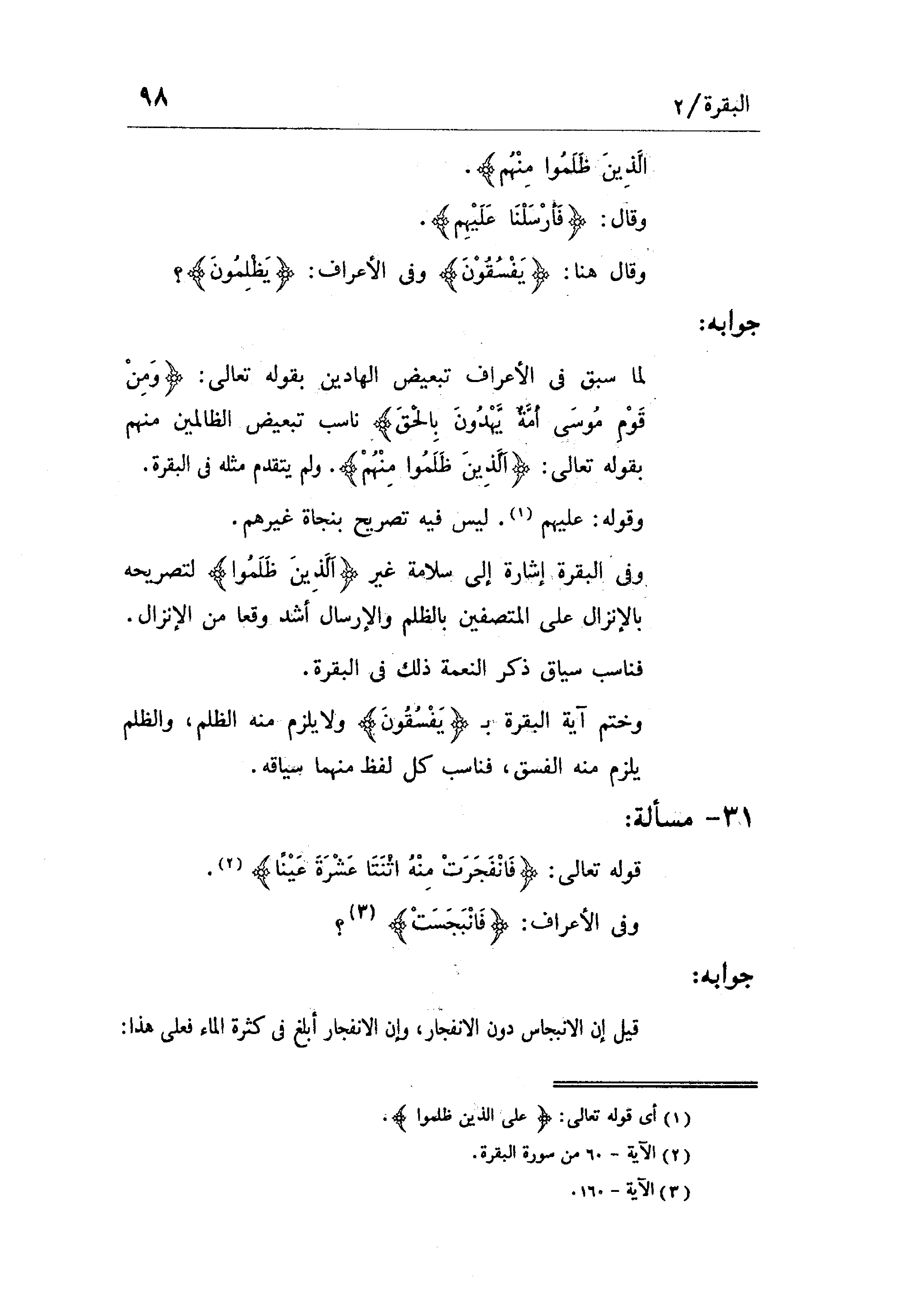 قوله تعالى: (فَانْفَجَرَتْ مِنْهُ اثْنَتَا عَشْرَةَ عَيْنًا)