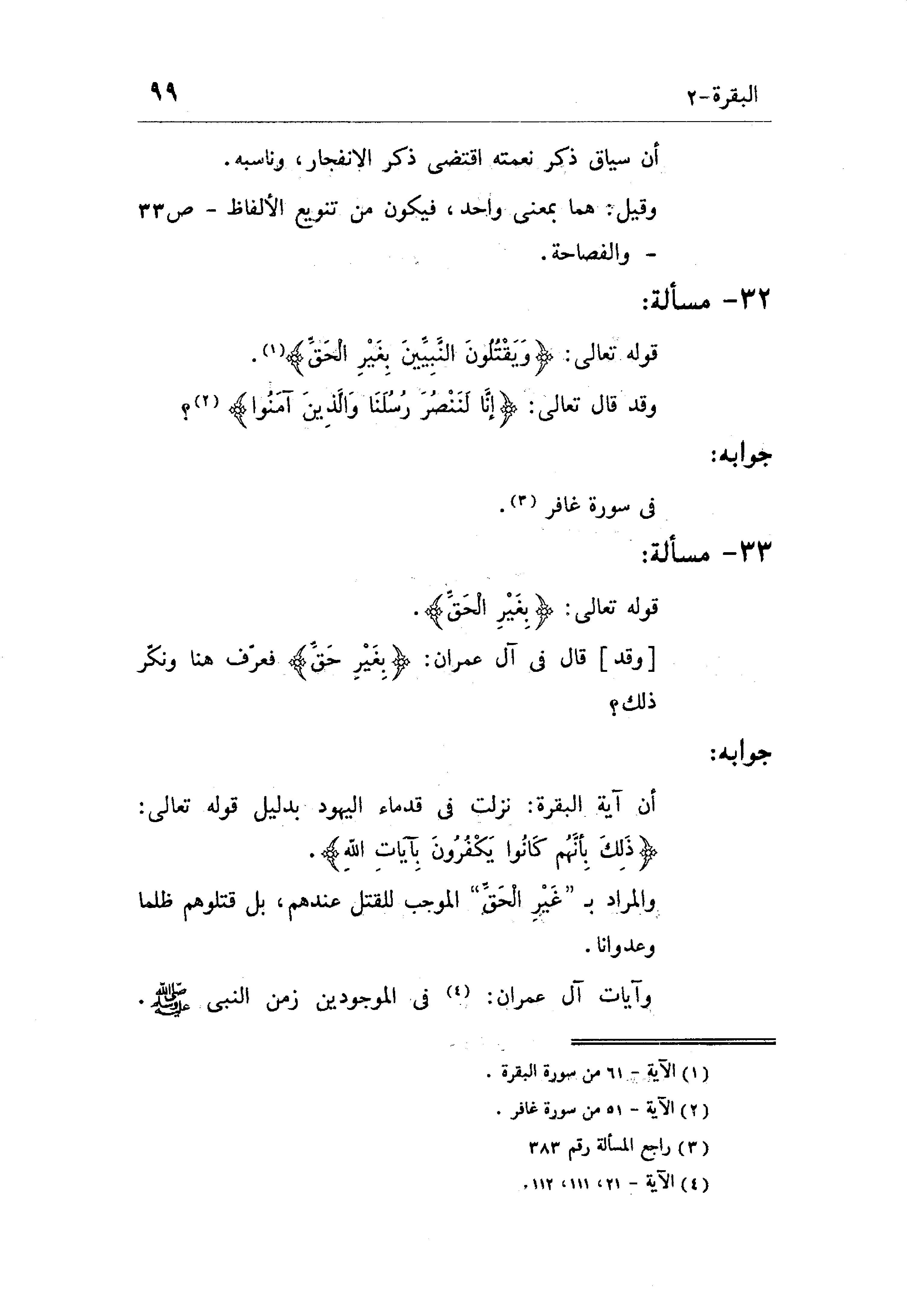 أن آية البقرة: نزلت في قدماء اليهود بدليل قوله تعالى: ذَلِكَ بِأَنَّهُمْ كَانُوا يَكْفُرُونَ بِآيَاتِ اللَّهِ.