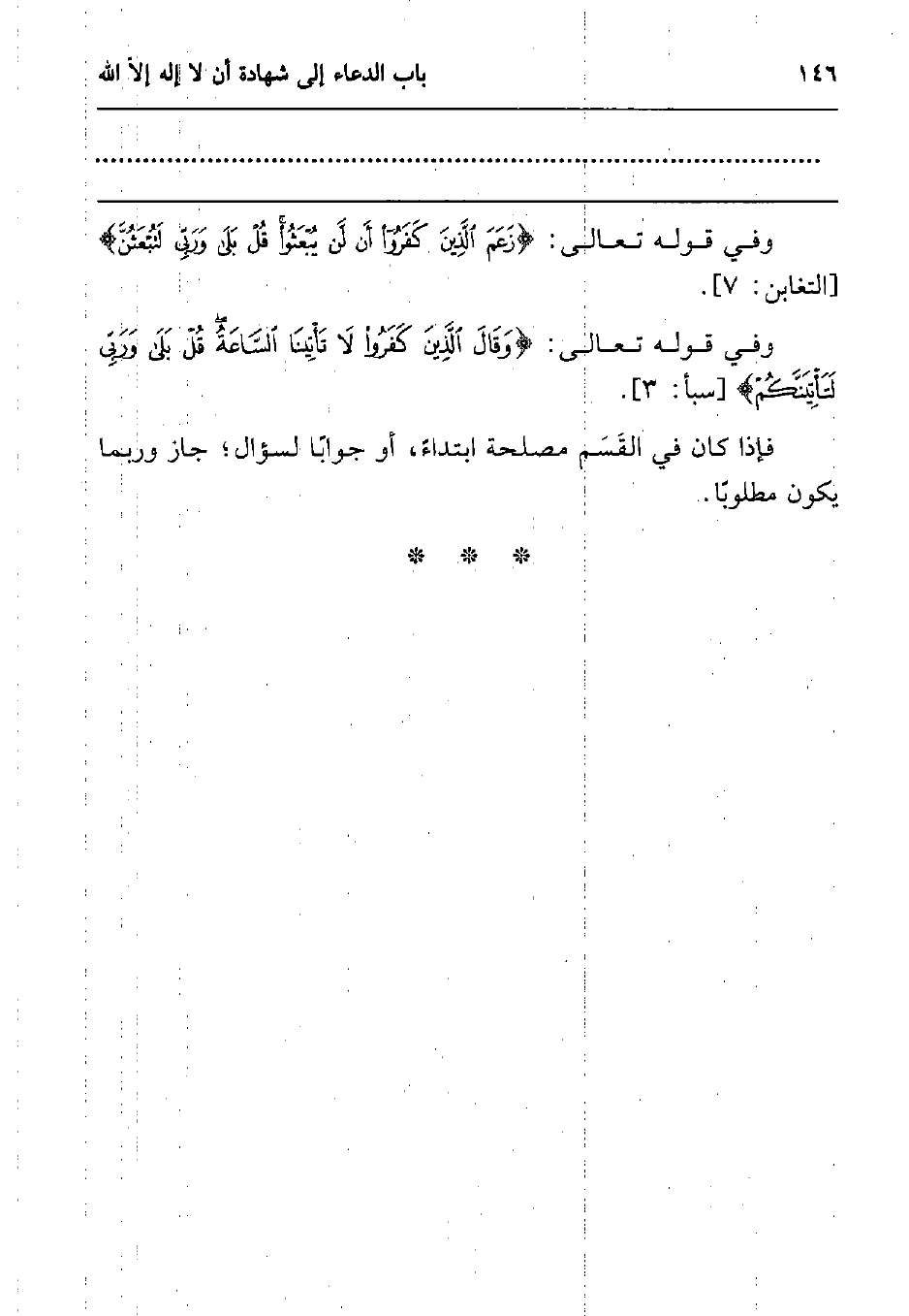 وفي قوله تعالى: {زَعَمَ الَّذِينَ كَفَرُوا أَنْ لَنْ يُبْعَثُوا قُلْ بَلَى وَرَبِّي لَتُبْعَثُنَّ} 1. وفي قوله تعالى: {وَقَالَ الَّذِينَ كَفَرُوا لا تَأْتِينَا السَّاعَةُ قُلْ بَلَى وَرَبِّي لَتَأْتِيَنَّكُمْ} 2 فإذا كان في القسم مصلحة ابتداء، أو جوابا لسؤال; جاز وربما يكون مطلوبا.