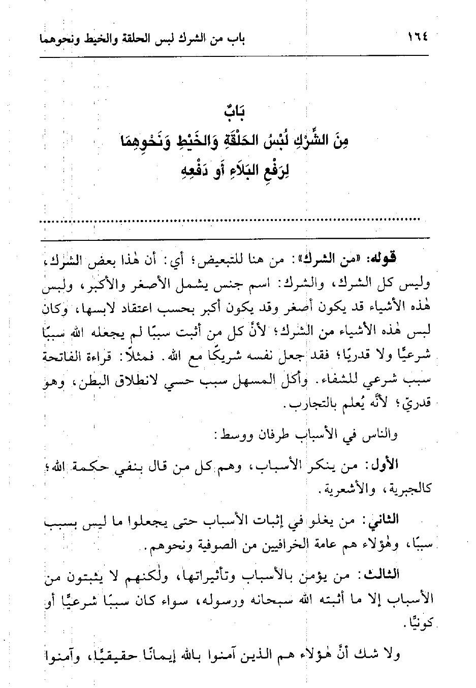 باب من الشرك لبس الحلقة والخيط ونحوهما لرفع البلاء أو دفعه