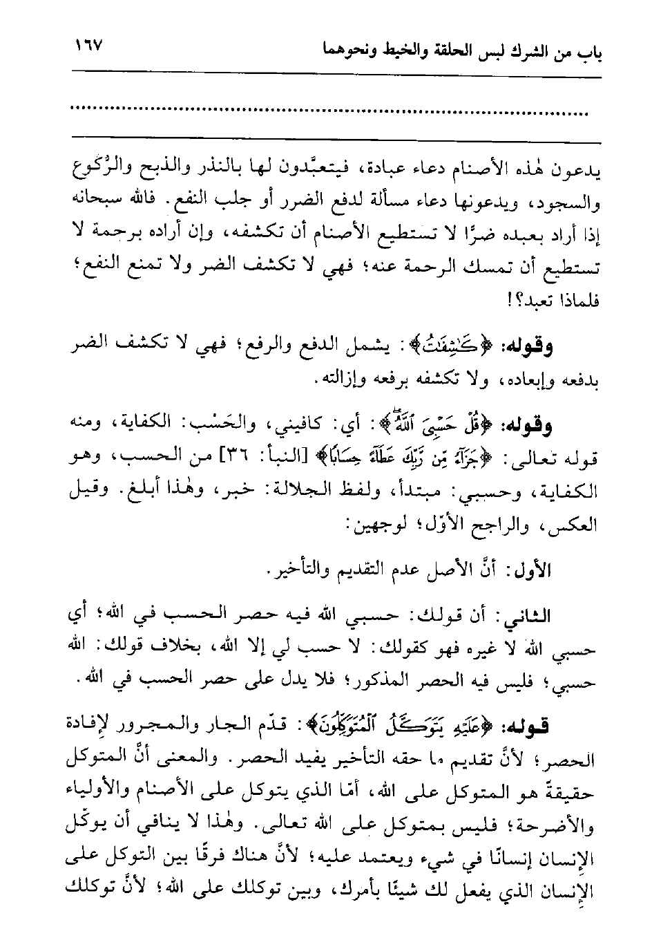 الثاني: أن قولك: حسبي الله فيه حصر الحسب في الله; أي حسبي الله لا غيره فهو كقولك: لا حسب لي إلا الله، بخلاف قولك: الله حسبي; فليس فيه الحصر المذكور; فلا يدل على حصر الحسب في الله.