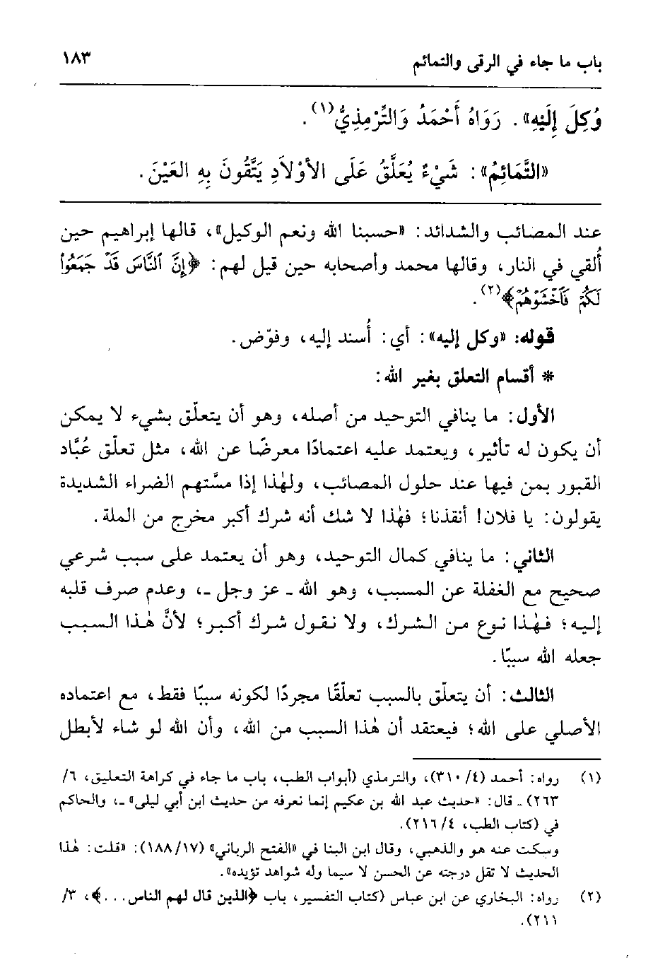 1 رواه: أحمد (4/310) , والترمذي (أبواب الطب, باب ما جاء فى كراهة التعليق, 6/ 263) - قال: "حديث عبد الله بن عكيم إنما نعرفه من حديث ابن أبي ليلى"-, والحاكم في (كتاب الطب, 4/216) . وسكت عنه هو والذهبي, وقال ابن البنا في "الفتح الرباني" (17/188) : "قلت: هذا الحديث لا تقل درجته عن الحسن لاسيما وله شواهد تؤيده".