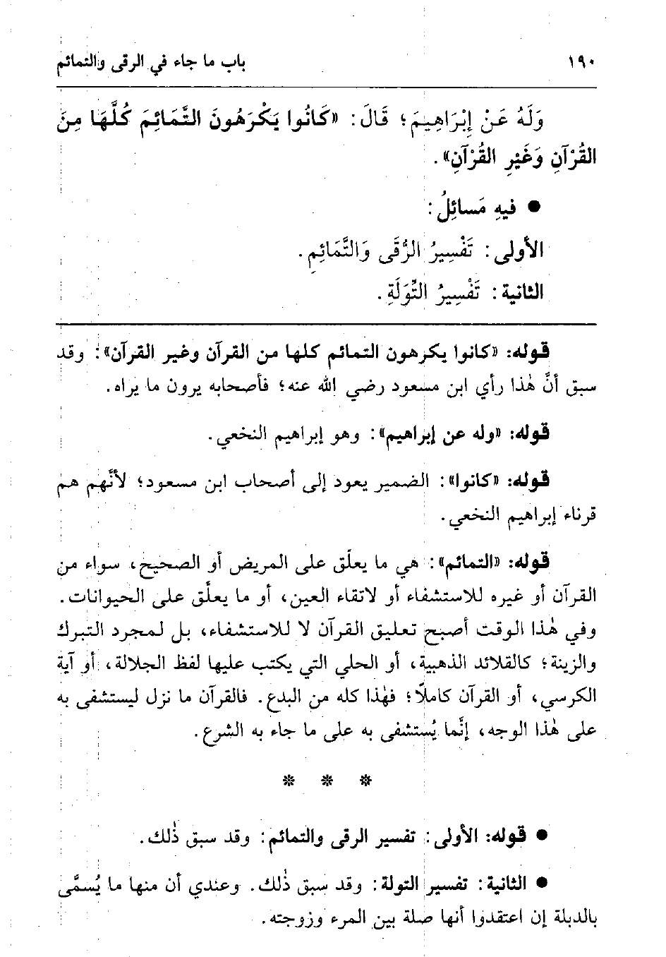 الأولى: تفسير الرقى والتمائم.