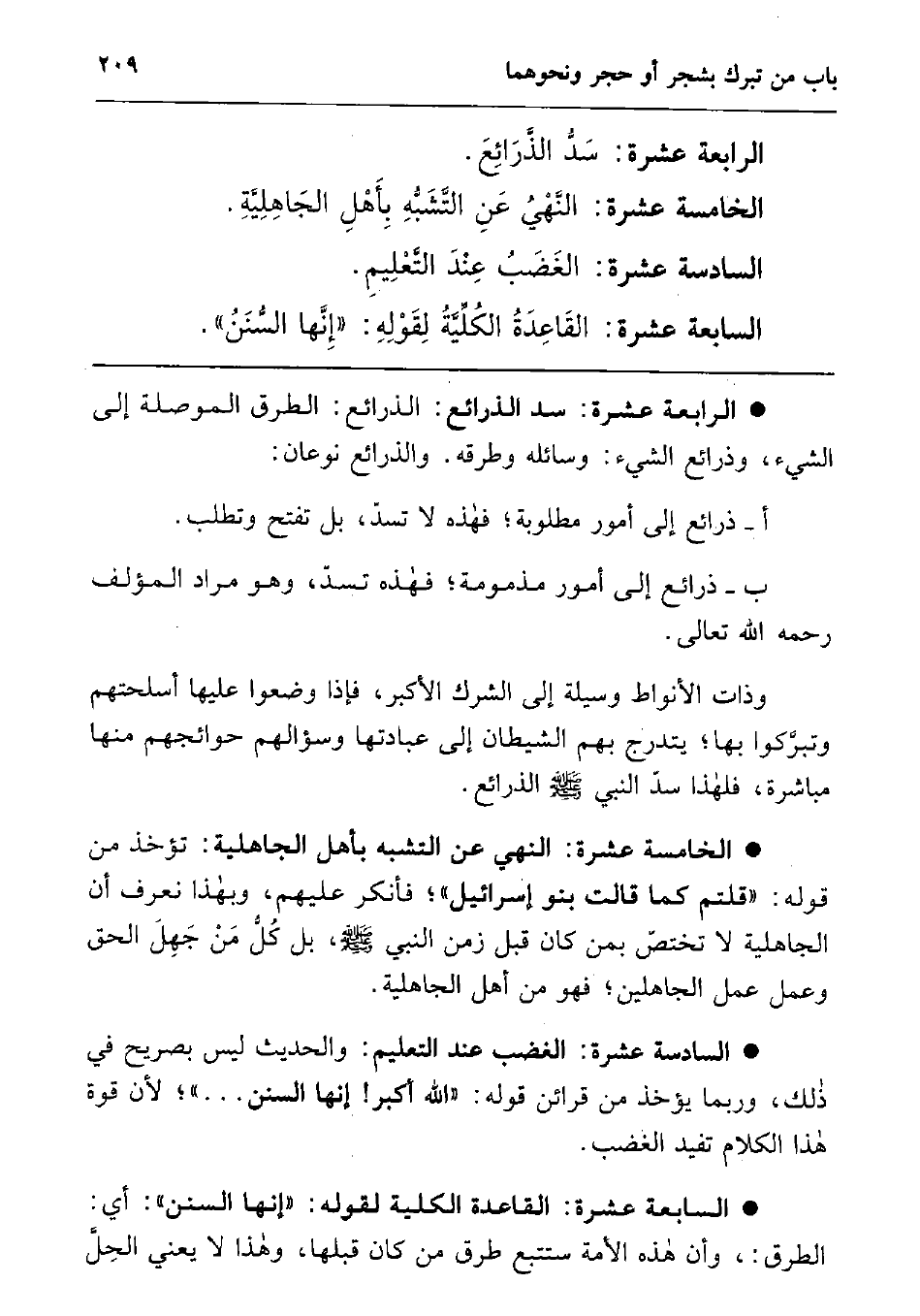 الرابعة عشرة: سد الذرائع: الذرائع، أي: الطرق الموصلة إلى الشيء، وذرائع الشيء، وسائله وطرقه. والذرائع نوعان: