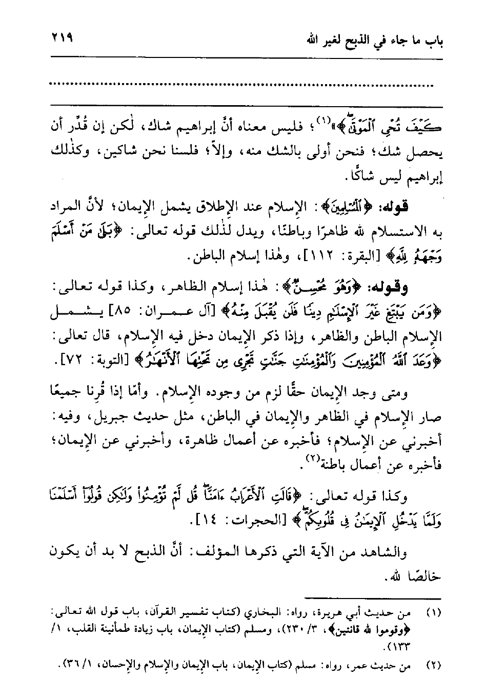والشاهد من الآية التي ذكرها المؤلف: أن الذبح لا بد أن يكون خالصا لله.