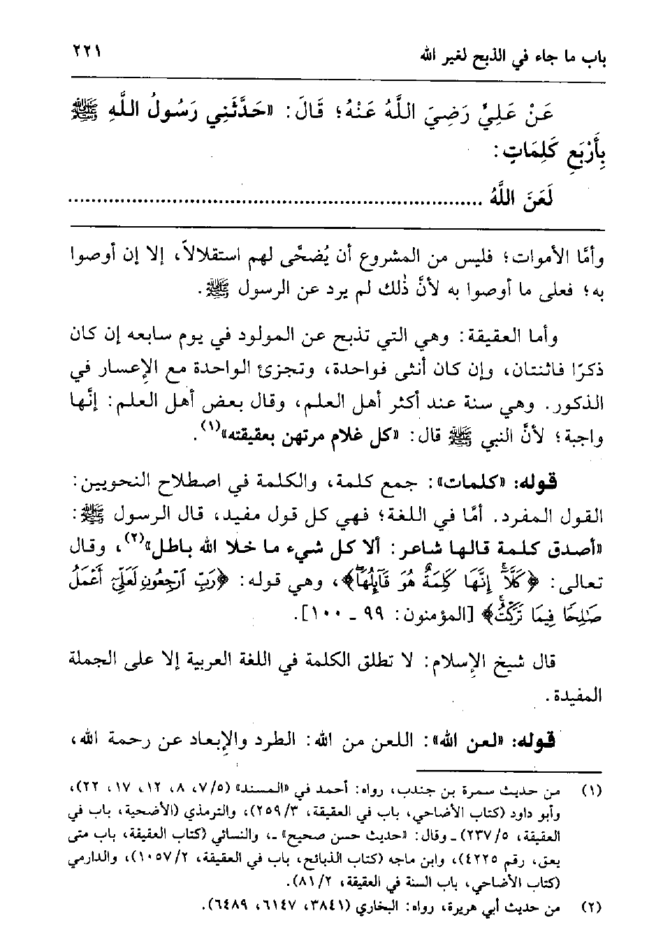 عن عليرضي الله عنهقال: " حدثني رسول الله صلى الله عليه وسلم بأربع كلمات: لعن الله.............