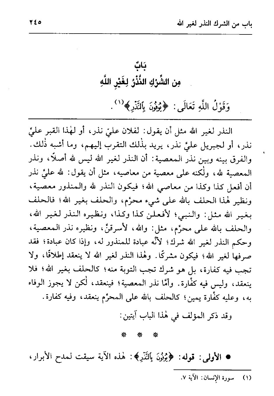 وقول الله تعالى: {يُوفُونَ بِالنَّذْرِ} 1.