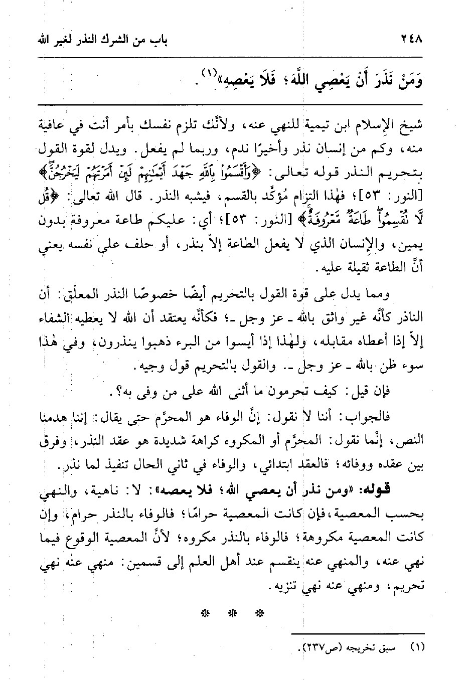 ومن نذر أن يعصي الله، فلا يعصه " 1.