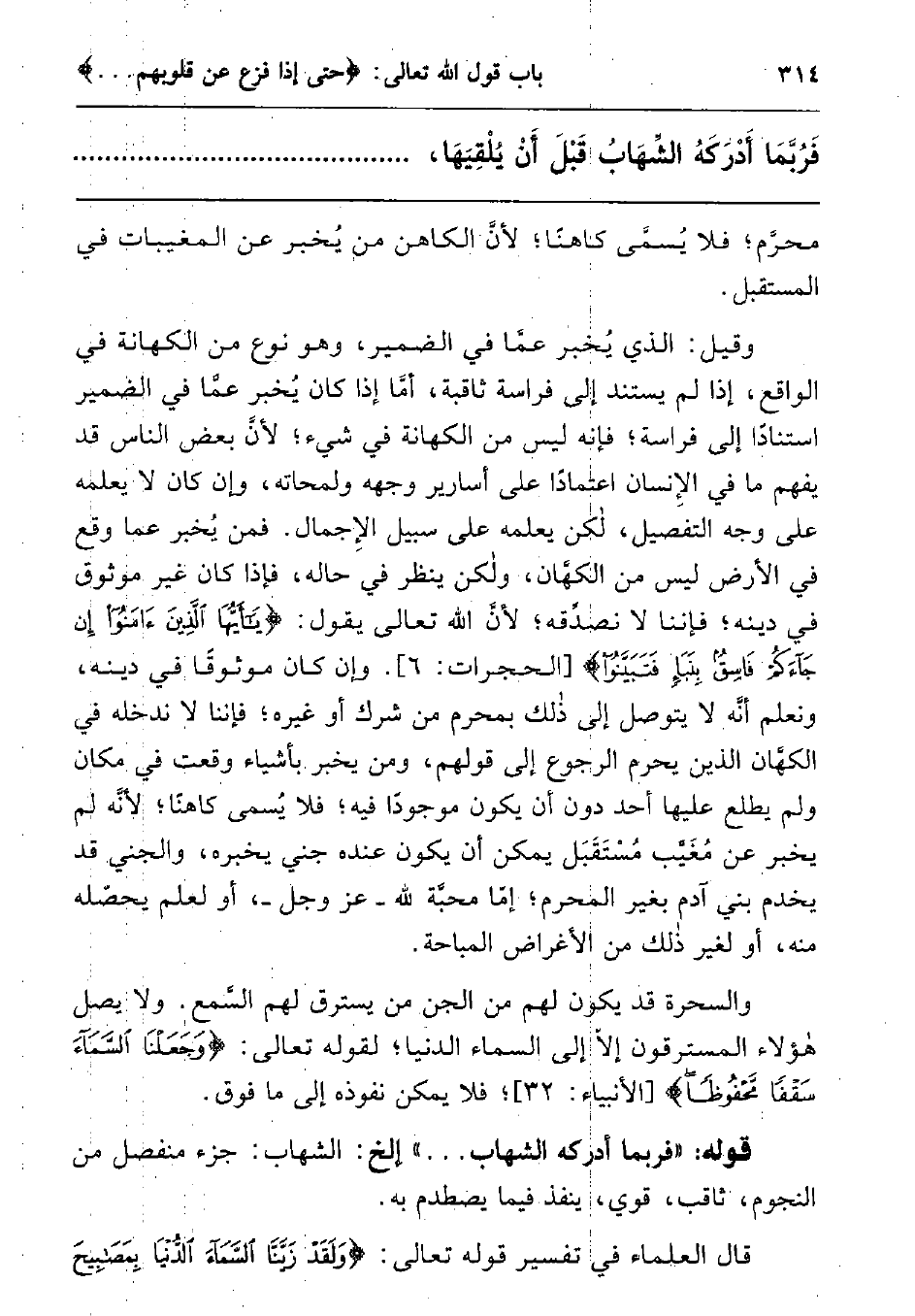 قوله: "فربما أدركه الشهاب ... " إلخ: الشهاب: جزء منفصل من النجوم، ثاقب، قوي، ينفذ فيما يصطدم به.