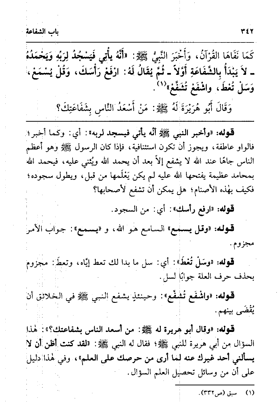 كما نفاها القرآن، وأخبر النبي صلى الله عليه وسلم " أنه يأتي فيسجد لربه ويحمده - لا يبدأ بالشفاعة أولا - ثم يقال له: ارفع رأسك، وقل يسمع، وسل تعط، واشفع تشفع "1.