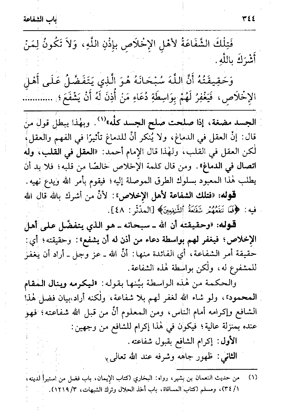 قوله: "فتلك الشفاعة لأهل الإخلاص": لأن من أشرك بالله قال الله فيه: {فَمَا تَنْفَعُهُمْ شَفَاعَةُ الشَّافِعِينَ} 2.