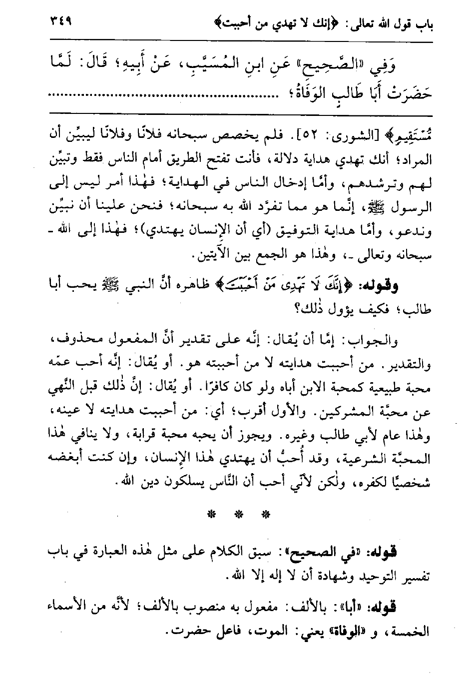 وفي " الصحيح " عن ابن المسيب، عن أبيه; قال: لما حضرت أبا طالب الوفاة;................................................................