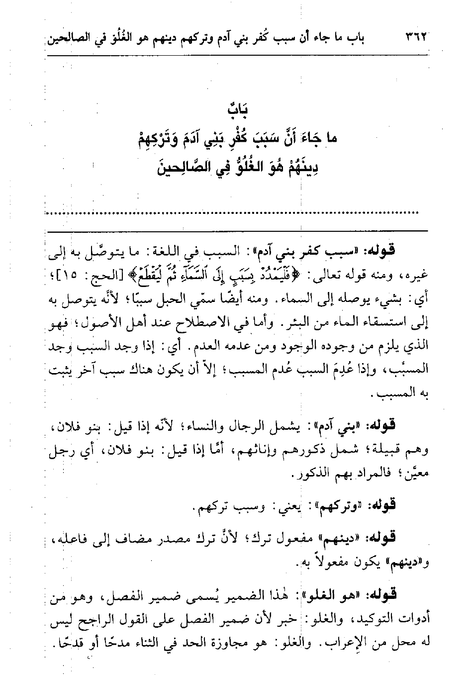 باب ما جاء أن سبب كفر بني آدم وتركهم دينهم هو الغلو في الصالحين.