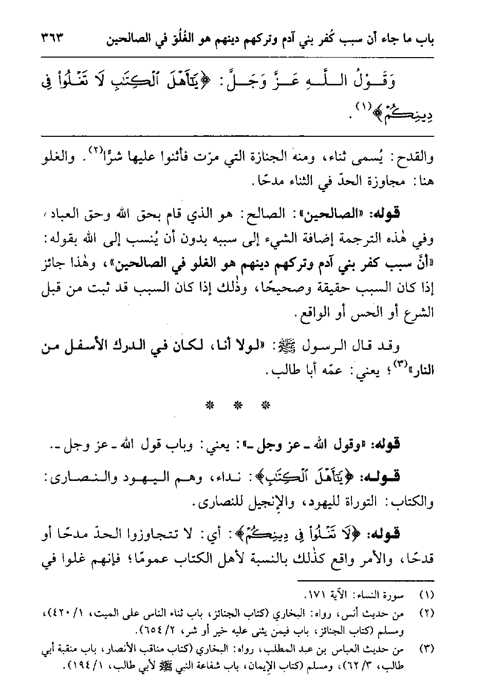 وقول الله عزوجل: {يَا أَهْلَ الْكِتَابِ لا تَغْلُوا فِي دِينِكُمْ} 1.