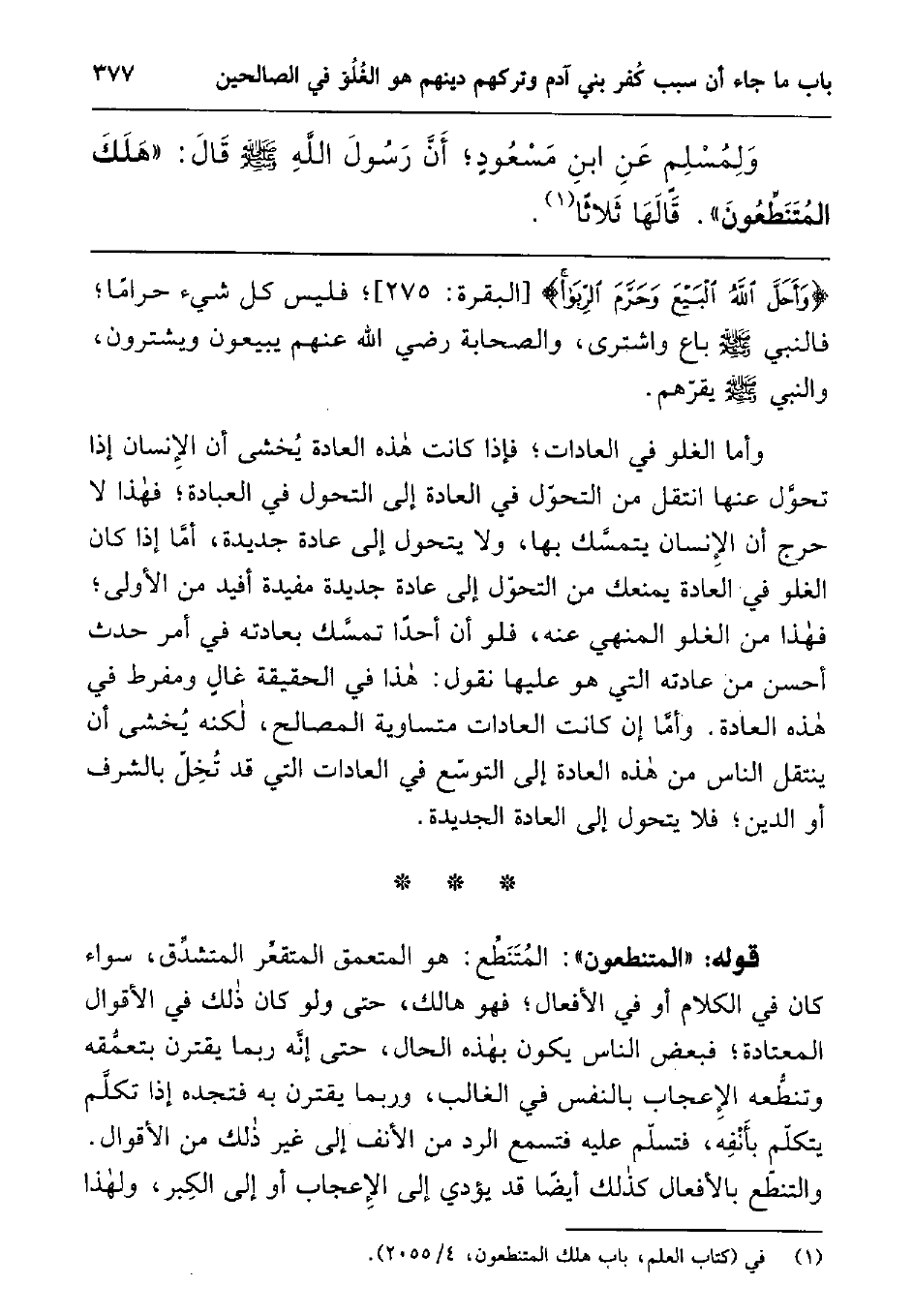 ولمسلم عن ابن مسعود; أن رسول الله صلى الله عليه وسلم قال: " هلك المتنطعون "1 قالها ثلاثا2.