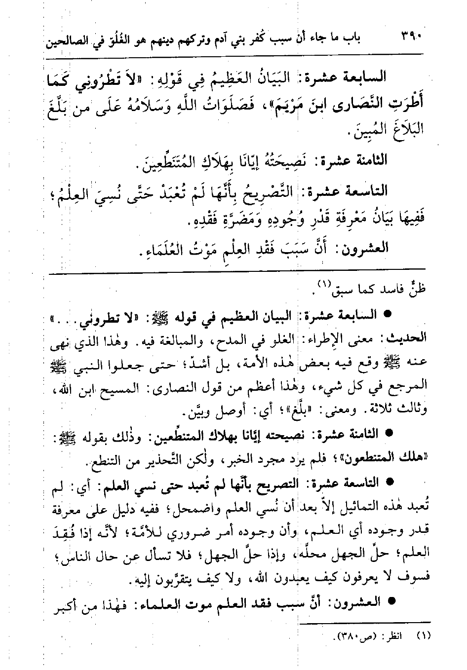 السابعة عشرة: البيان العظيم في قوله: " لا تطروني كما أطرت النصارى ابن مريم "1 فصلوات الله وسلامه على من بلغ البلاغ المبين.