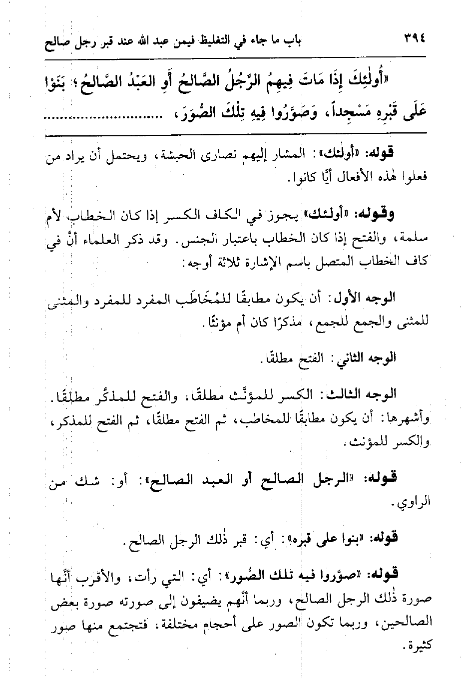 " أولئك إذا مات فيهم الرجل الصالح أو العبد الصالح; بنوا على قبره مسجدا، وصوروا فيه تلك الصور،.....................................