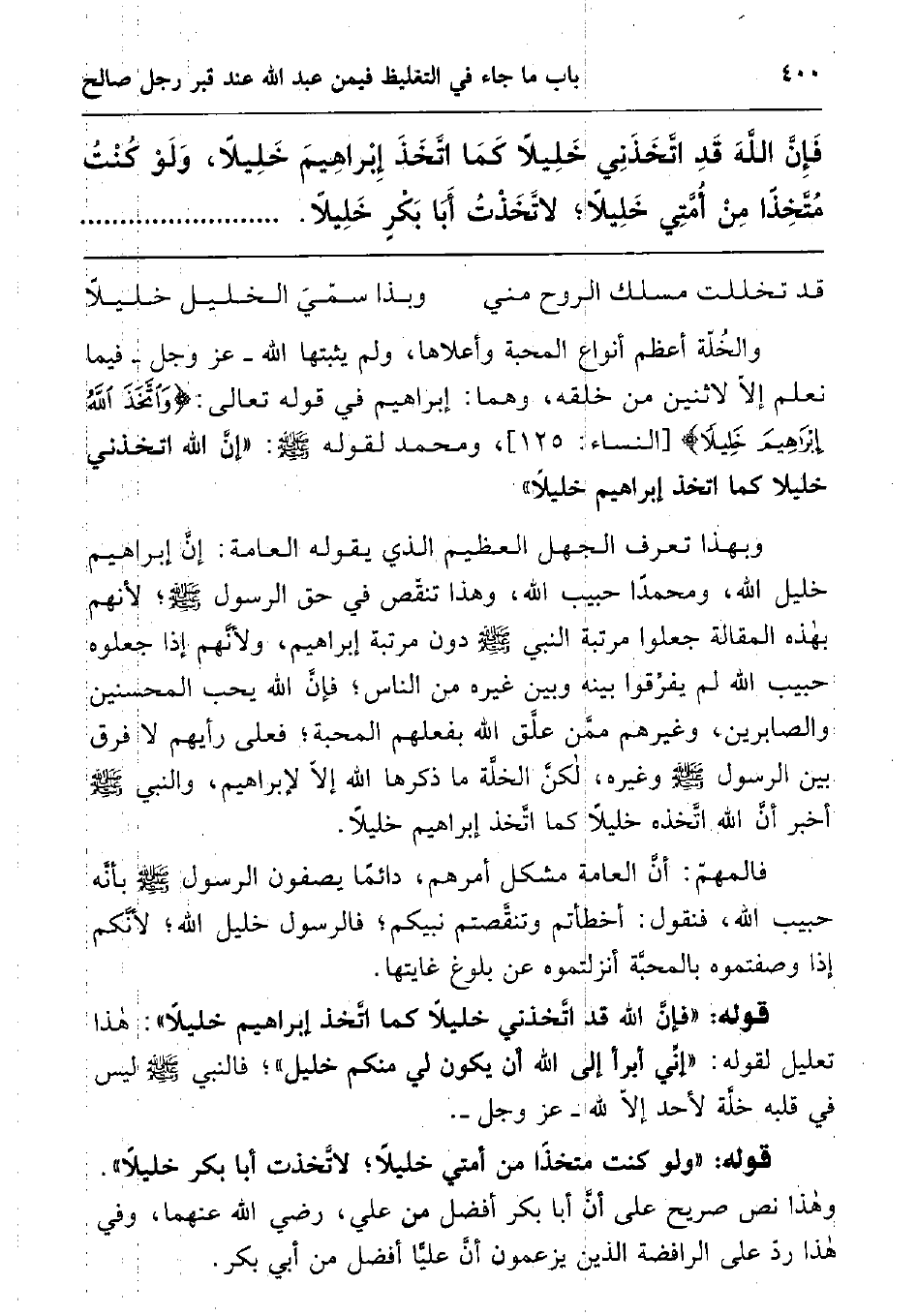 فإن الله قد اتخذني خليلا كما اتخذ إبراهيم خليلا، ولو كنت متخذا من أمتي خليلا; لاتخذت أبا بكر خليلا "1..................................
