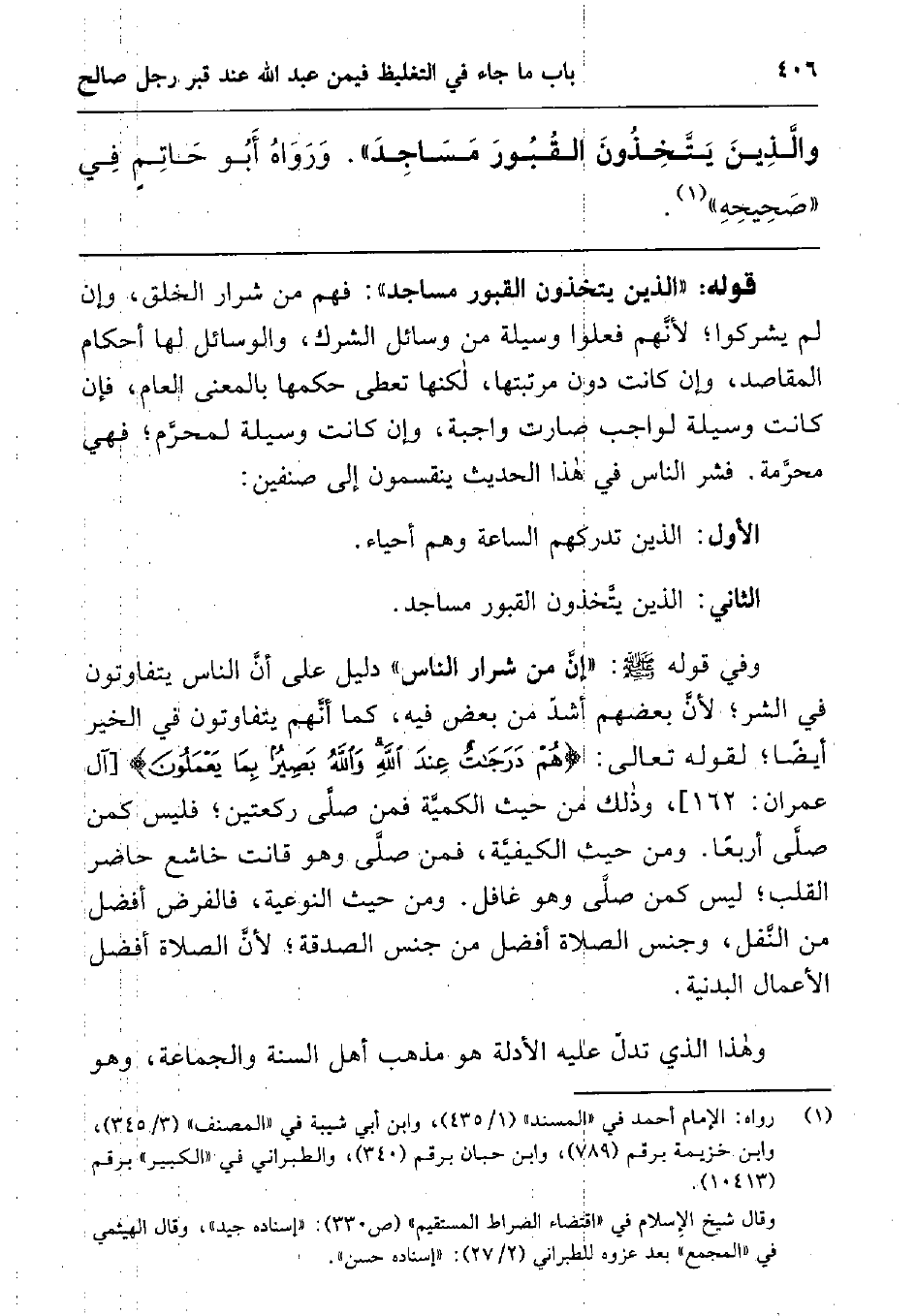 والذين يتخذون القبور مساجد " ورواه أبو حاتم في " صحيحه1 ".