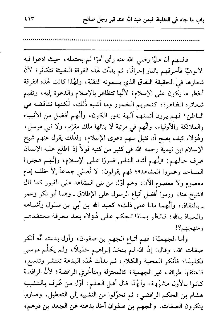 فالمهم أن عليارضي الله عنهرأى أمرا لم يحتمله، حيث ادعوا فيه الألوهية فأحرقهم بالنار إحراقا، ثم بدأت هذه الفرقة الخبيثة تتكاثر; لأن شعارها في الحقيقة النفاق الذي يسمونه التقية، ولهذا كانت هذه الفرقة أخطر ما يكون على الإسلام; لأنها تتظاهر بالإسلام والدعوة إليه، وتقيم شعائره الظاهرة; كتحريم الخمور وما أشبه ذلك، لكنها تناقضه في الباطن; فهم يرون أئمتهم آلهة تدير الكون، وأنهم أفضل من الأنبياء والملائكة والأولياء، وأنهم في مرتبة لا ينالها ملك مقرب ولا نبي مرسل، وهؤلاء كيف يصح أن تقبل منهم دعوى الإسلام، ولذلك يقول عنهم شيخ الإسلام ابن تيمية رحمه الله في كثير من كتبه قولا إذا اطلع عليه الإنسان عرف حالهم: "إنهم أشد الناس ضررا على الإسلام، وإنهم هجروا المساجد وعمروا المشاهد"; فهم يقولون: لا نصلي جماعة إلا خلف إمام معصوم ولا معصوم الآن، وهم أول من بنى المشاهد على القبور كما قال الشيخ هنا، ورموا أفضل أتباع الرسول صلى الله عليه وسلم على الإطلاق - وهما أبو بكر وعمر - بالنفاق، وأنهما ماتا على ذلك; كعبد الله بن أبي بن سلول وأشباهه والعياذ بالله; فانظر بماذا تحكم على هؤلاء بعد معرفة معتقدهم ومنهجهم؟!