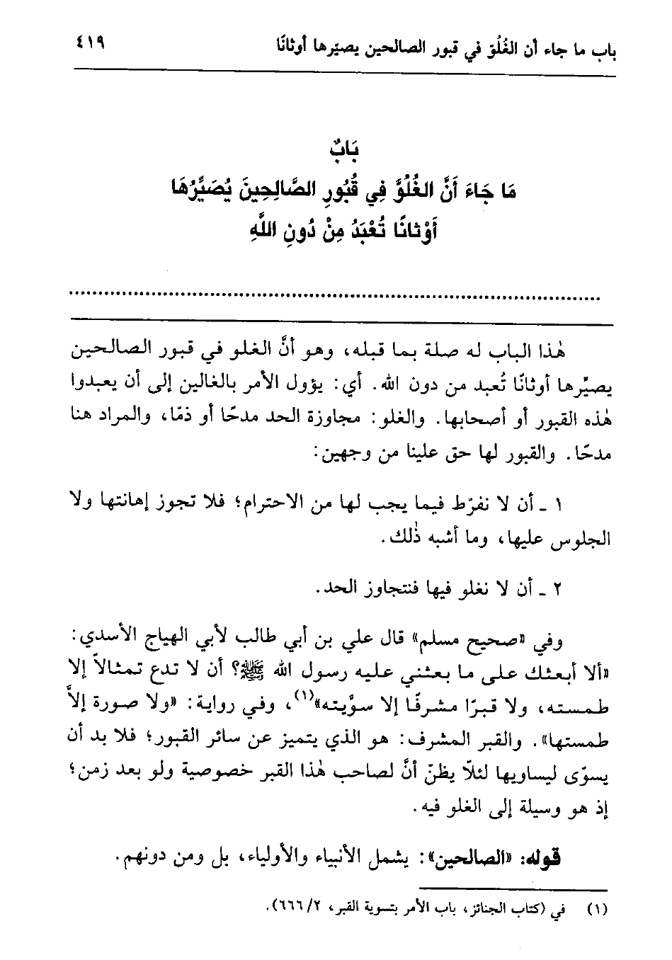 باب ما جاء أن الغلو في قبور الصالحين يصيرها أوثانا تعبد من دون الله