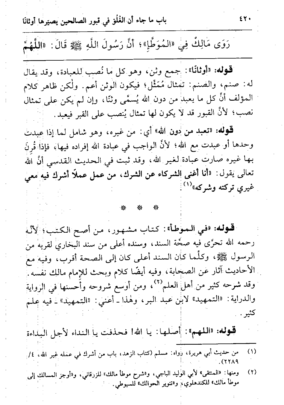 2 ومنها: "المنتقى" لأبي الوليد الباجي, و "شرح موطأ مالك" للزرقاني, و "أوجز المسالك إلى موطأ مالك" للكاندهلوي, و "تنوير الحوالك" للسيوطي.