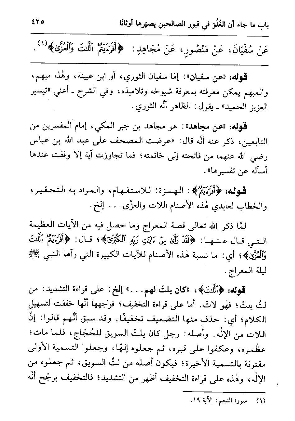 عن سفيان، عن منصور، عن مجاهد: {أَفَرَأَيْتُمُ اللاَّتَ وَالْعُزَّى} 1.