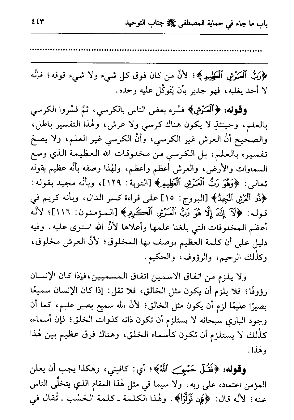 {رَبُّ الْعَرْشِ الْعَظِيمِ} 1 لأن من كان فوق كل شيء ولا شيء فوقه; فإنه لا أحد يغلبه، فهو جدير بأن يتوكل عليه وحده.