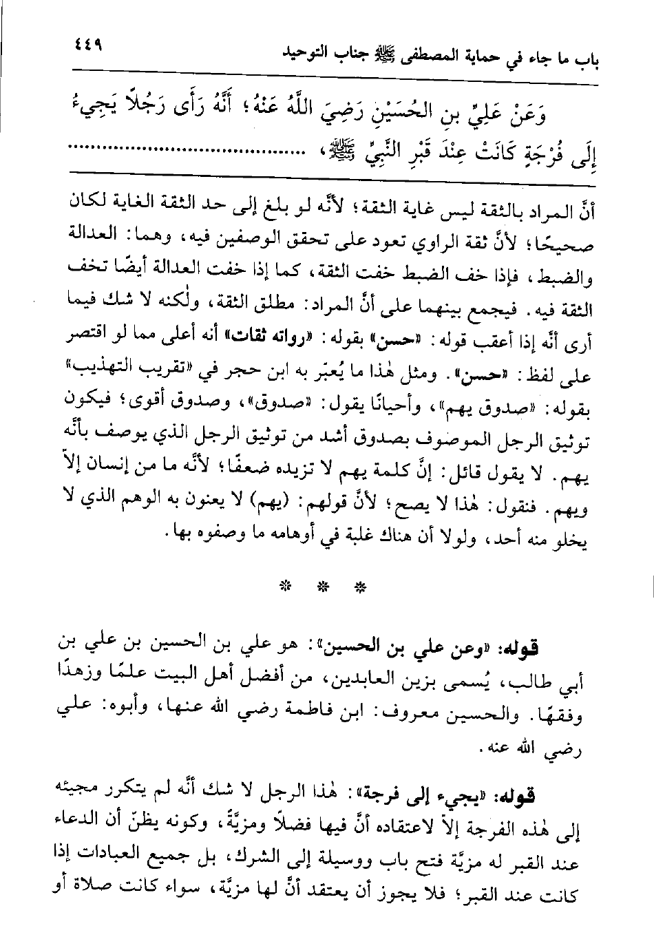 وعن علي بن الحسينرضي الله عنهأنه رأى رجلا يجيء إلى فرجة كانت عند قبر النبي صلى الله عليه وسلم..............................................................